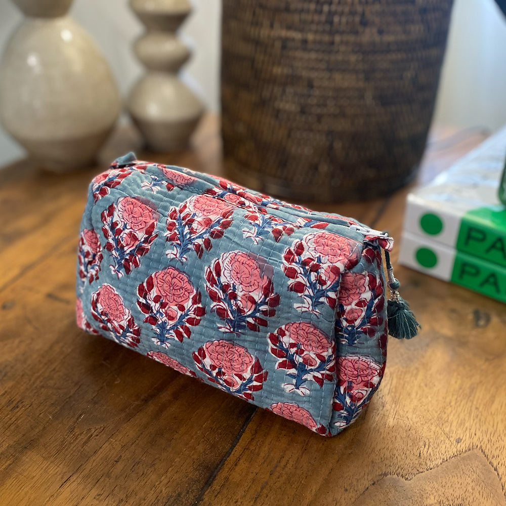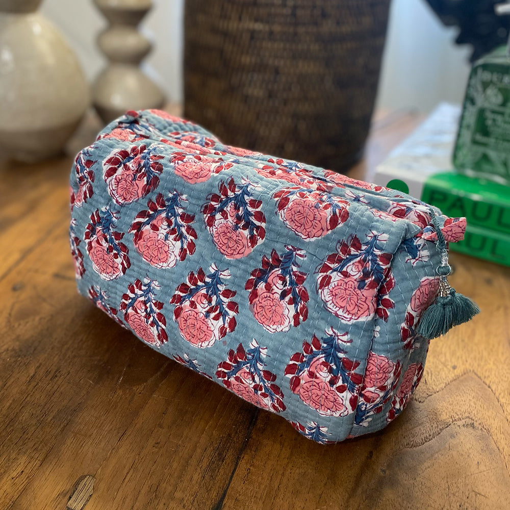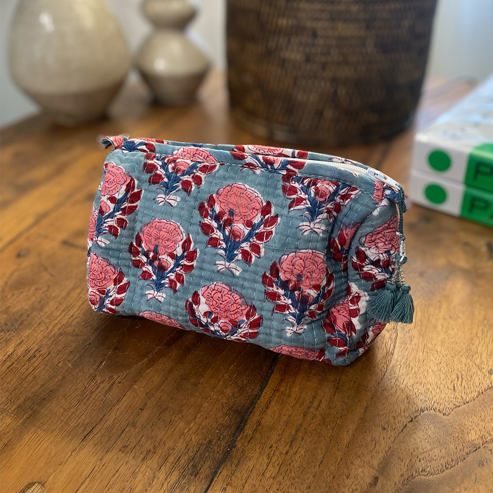 Quilted Cotton Cosmetic Pouch – Block Printed - Iris