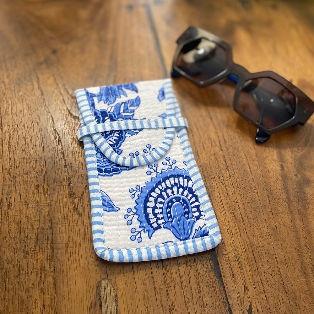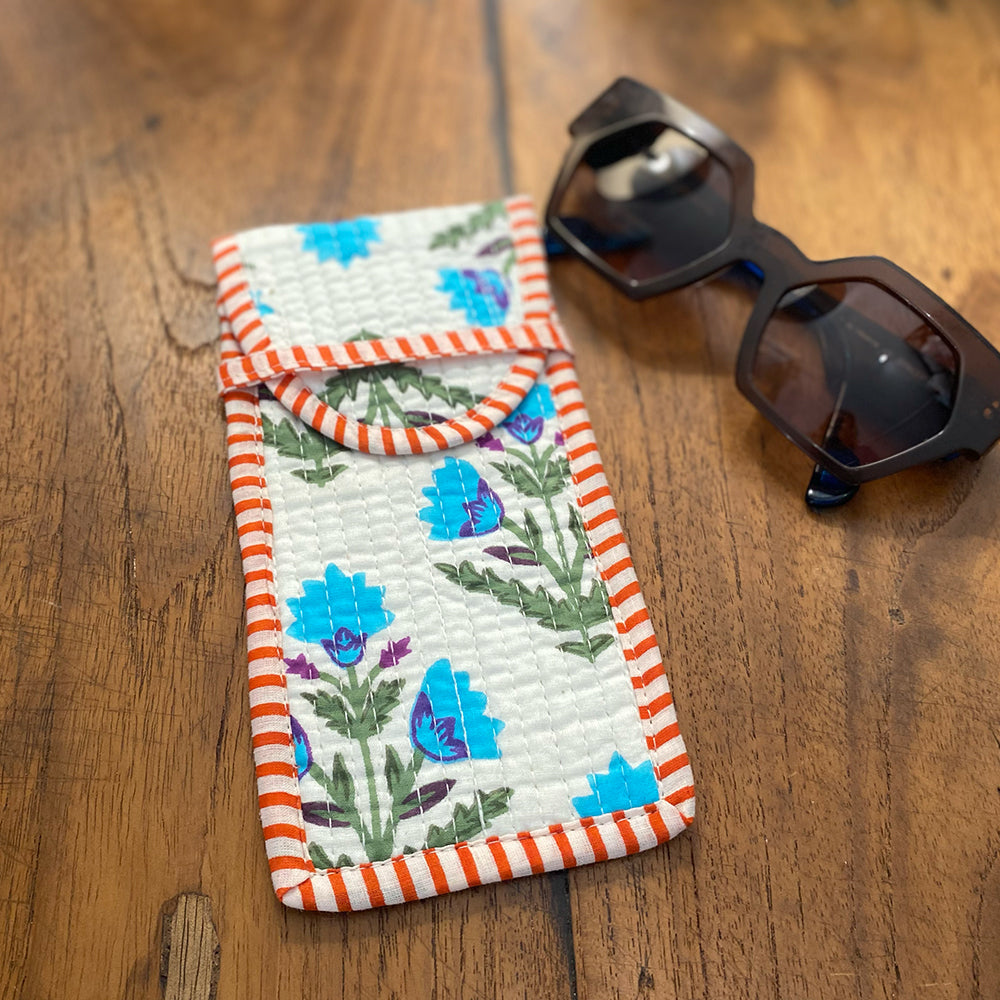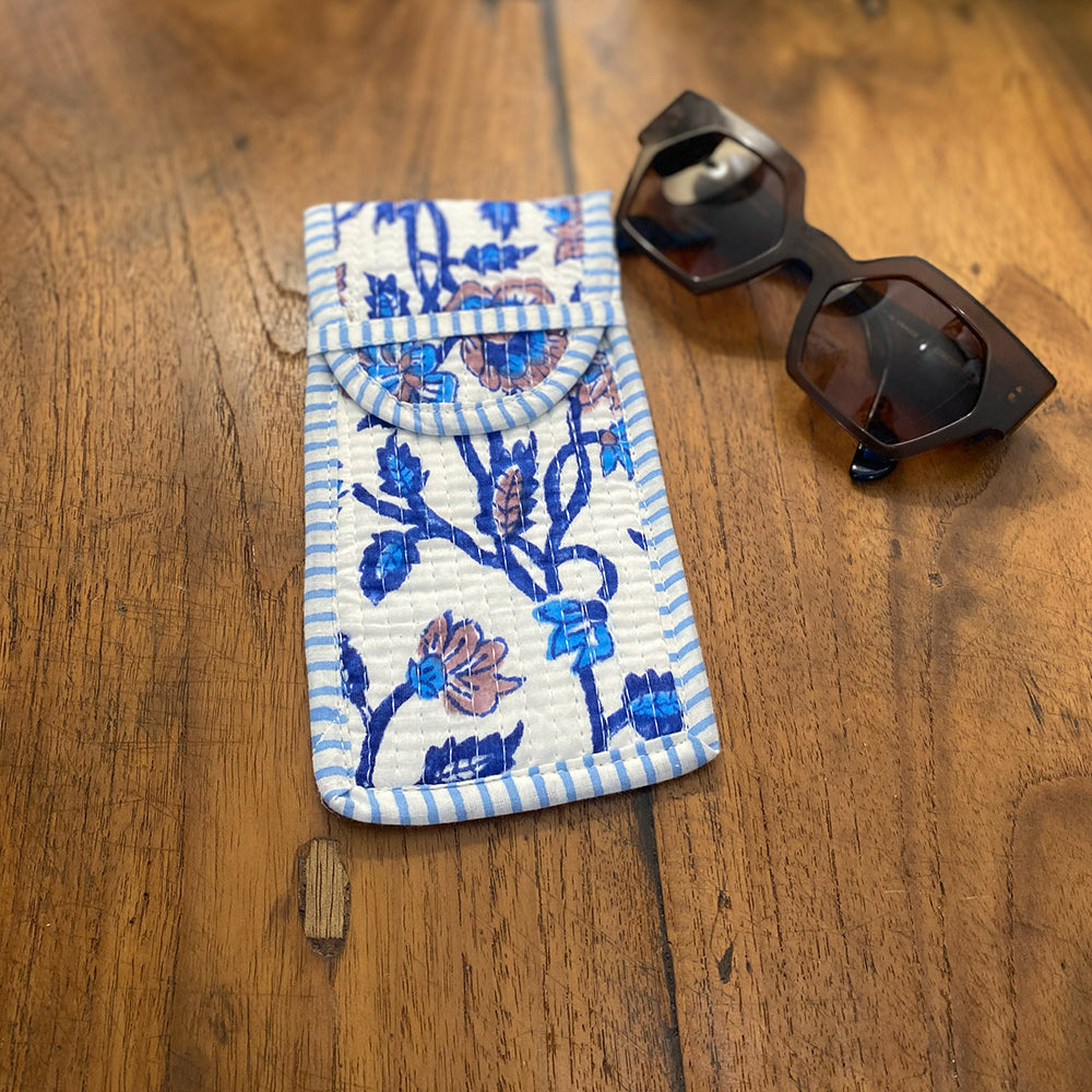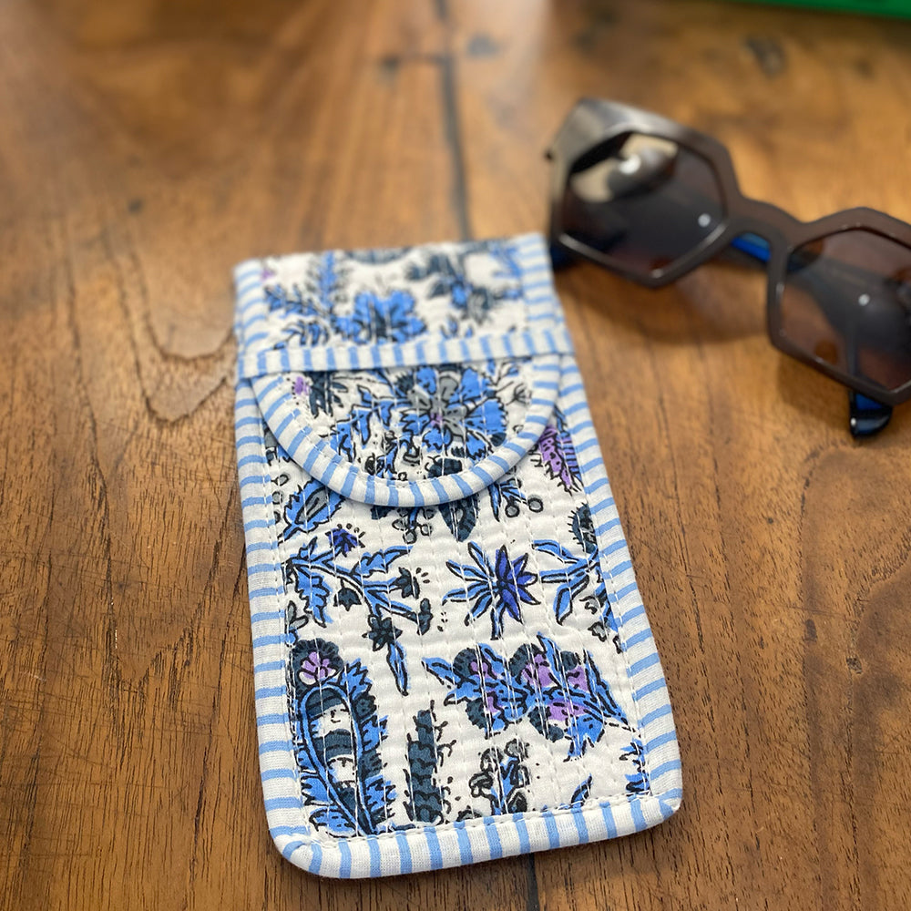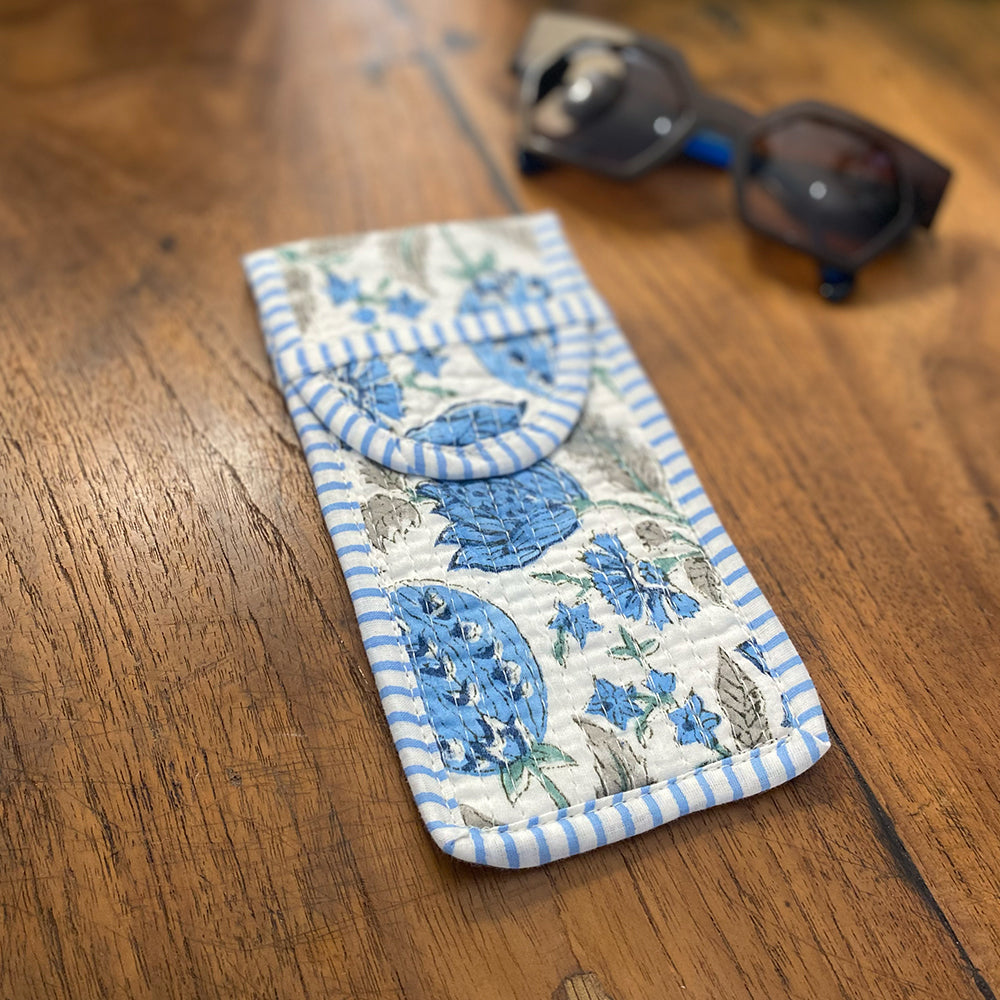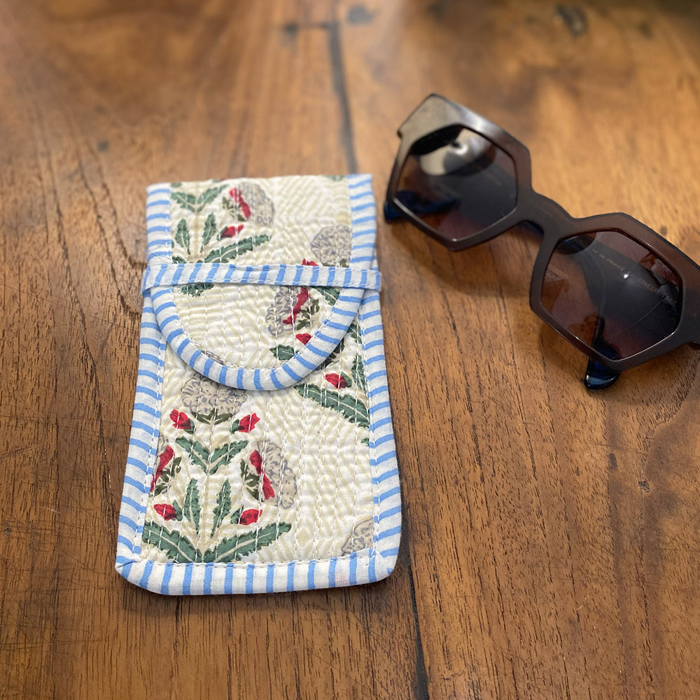 Block Printed Glasses Case – Quilted Cotton Eyewear Pouch - Blythe