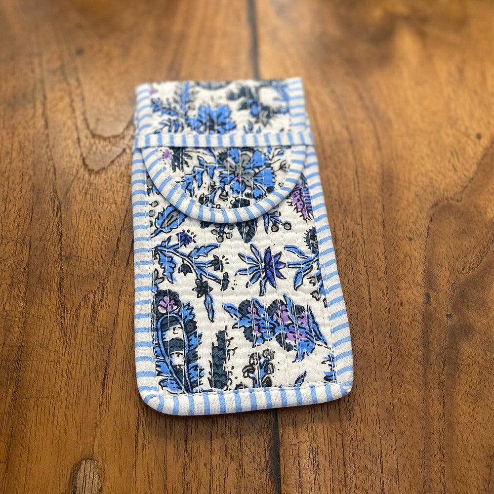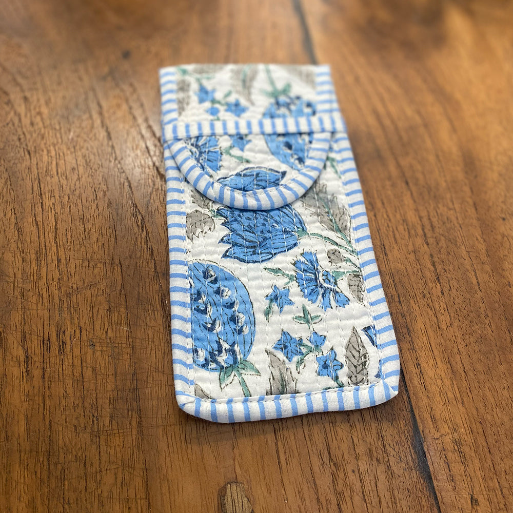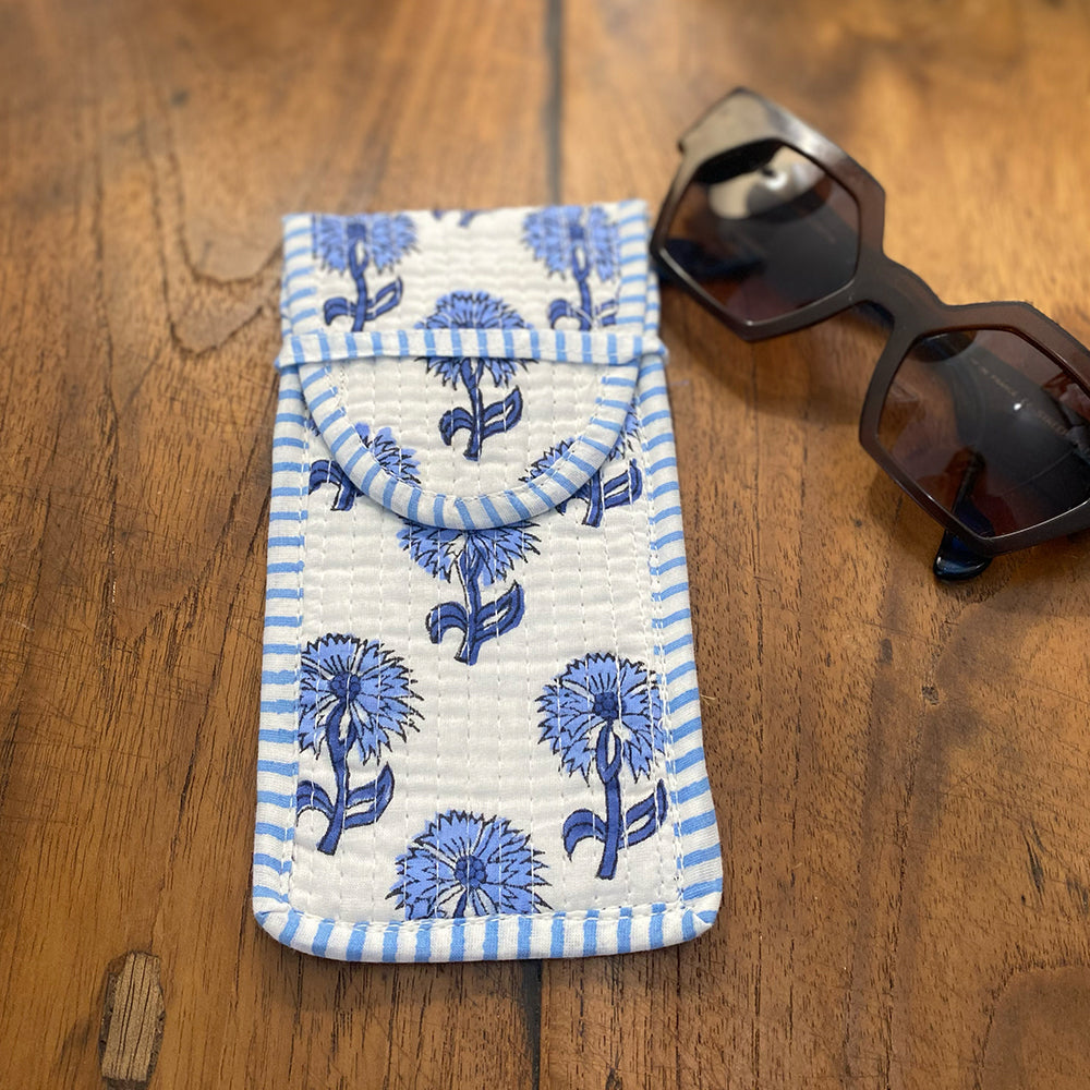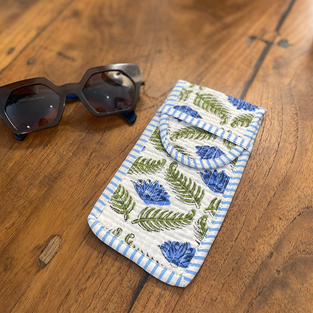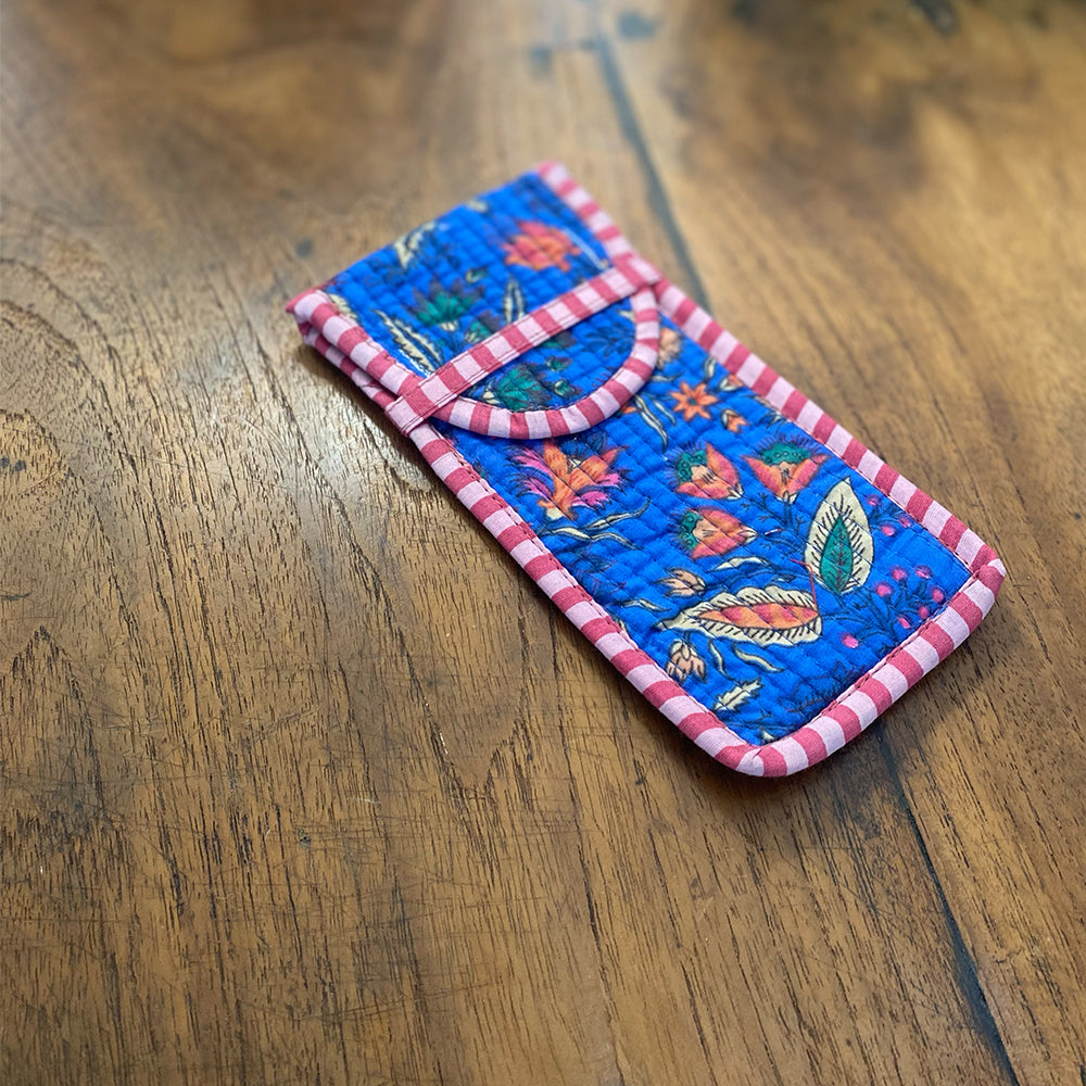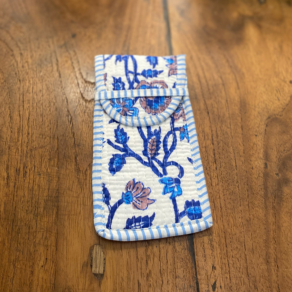 Block Printed Glasses Case – Quilted Cotton Eyewear Pouch - Blythe