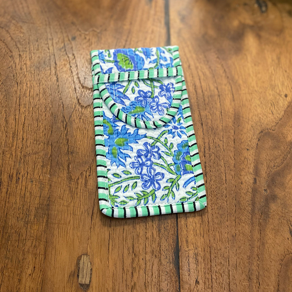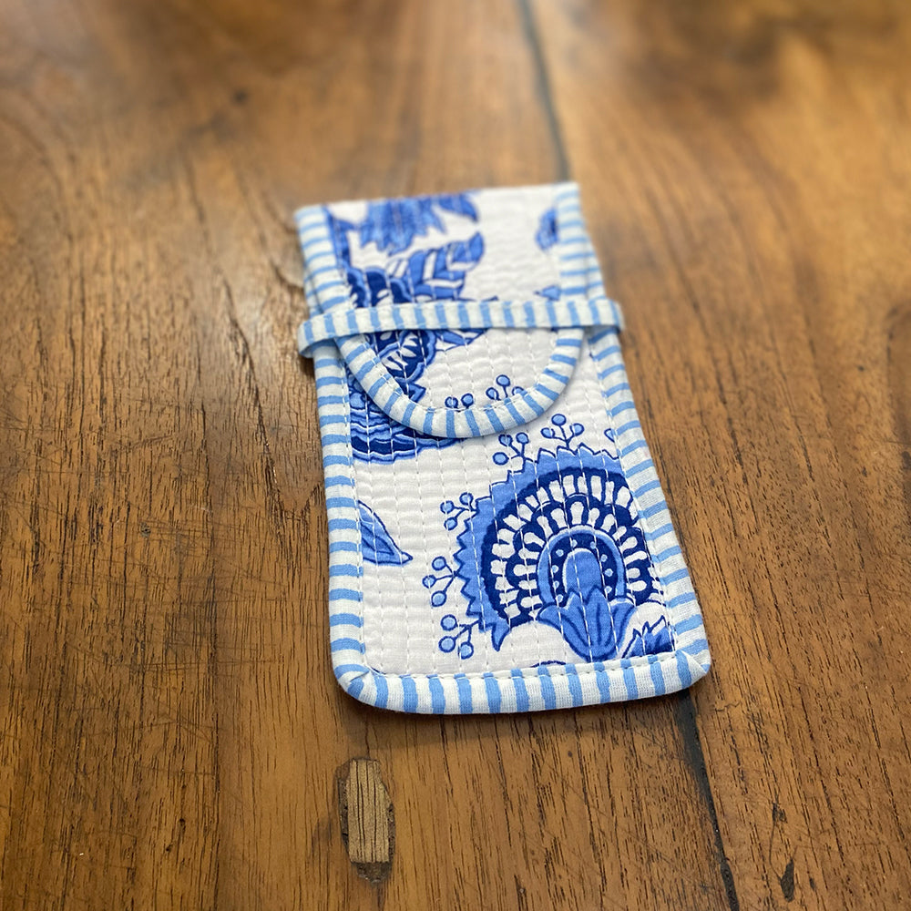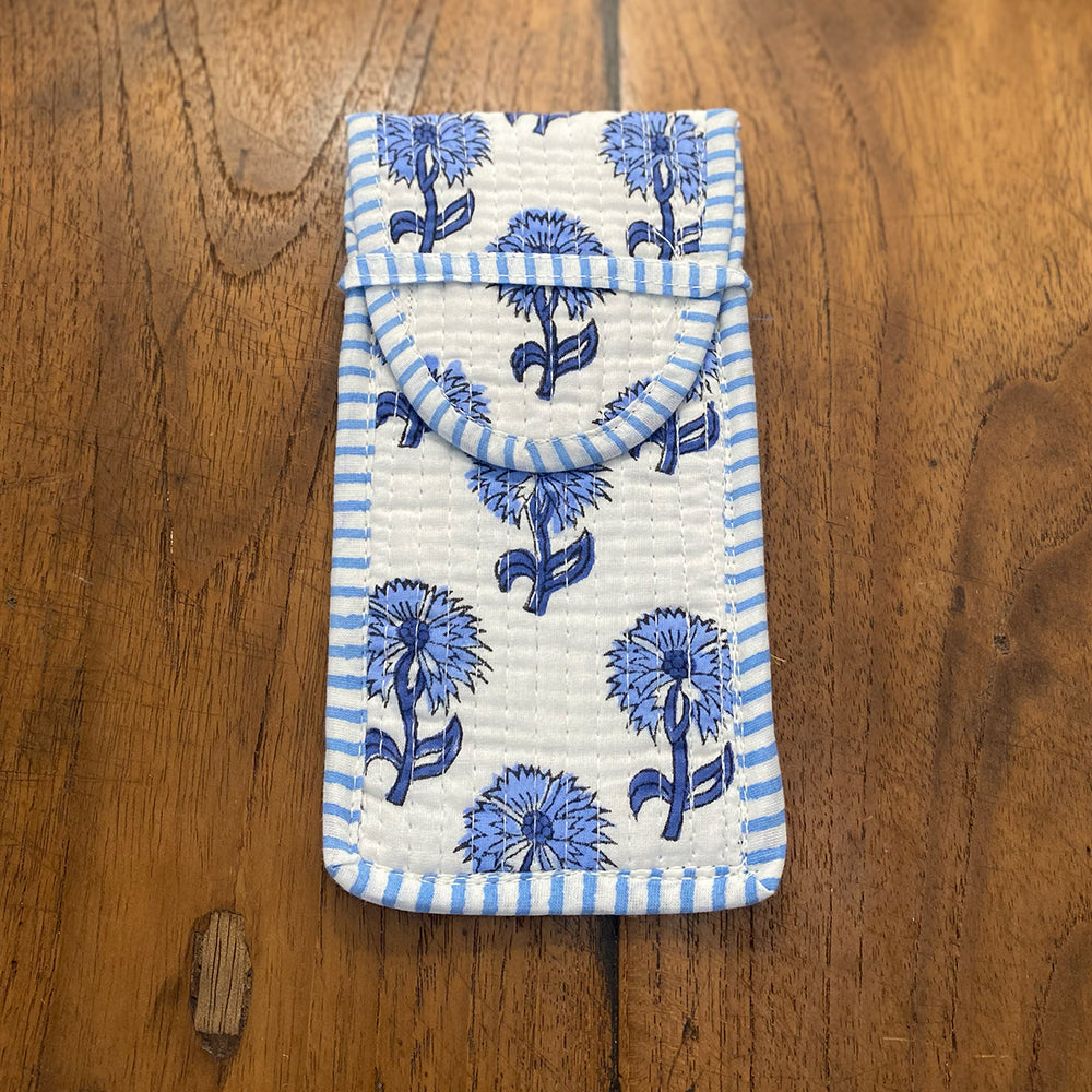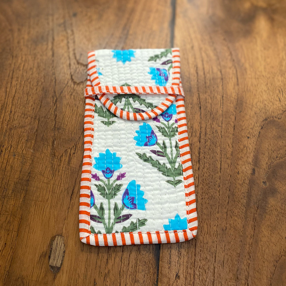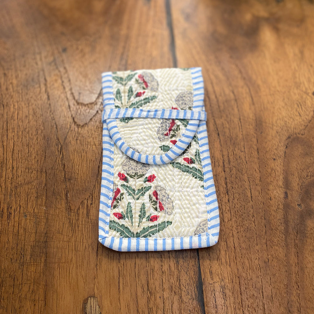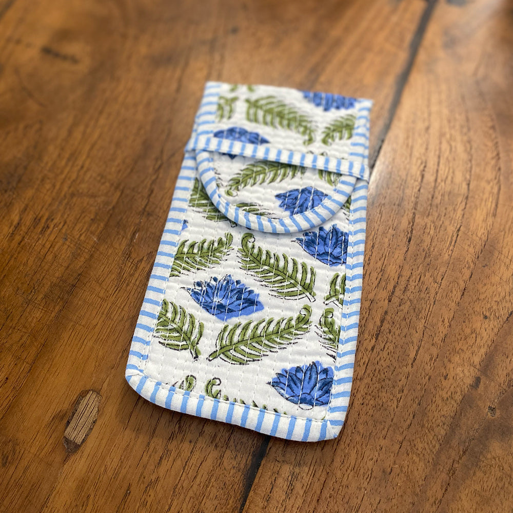 Block Printed Glasses Case – Quilted Cotton Eyewear Pouch - Blythe