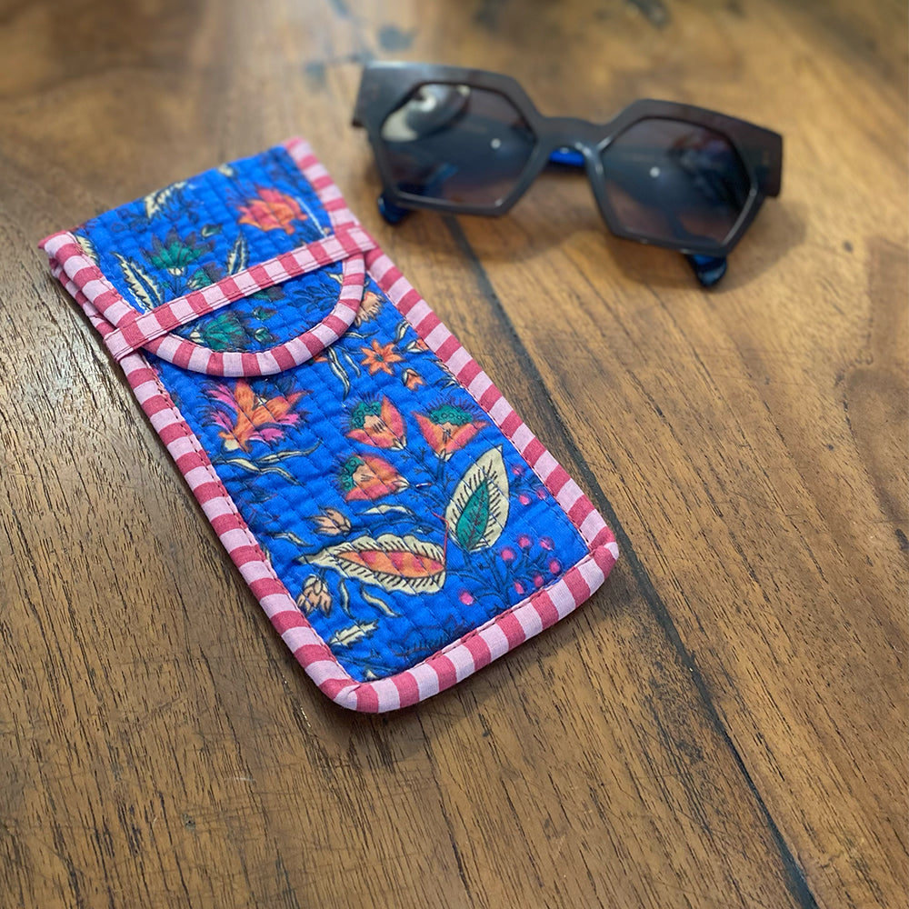 Block Printed Glasses Case – Quilted Cotton Eyewear Pouch - Gwen