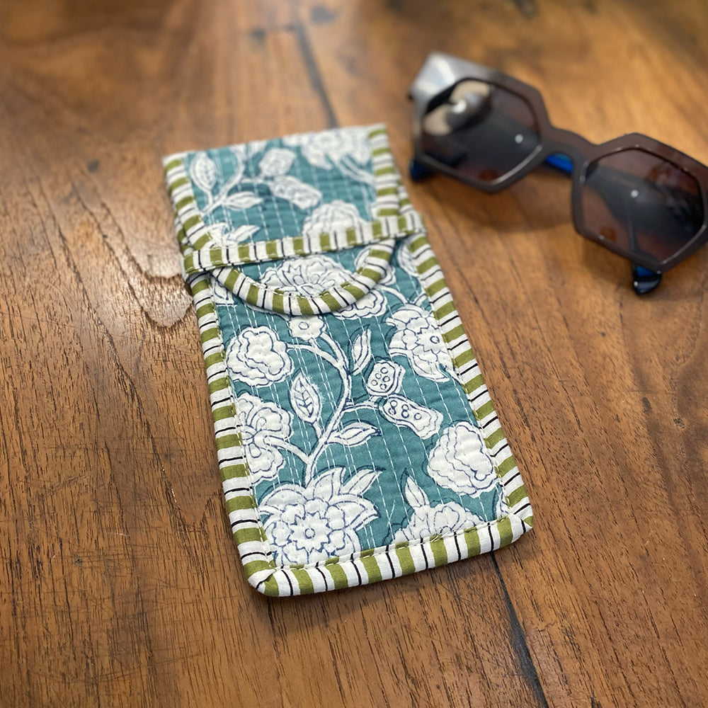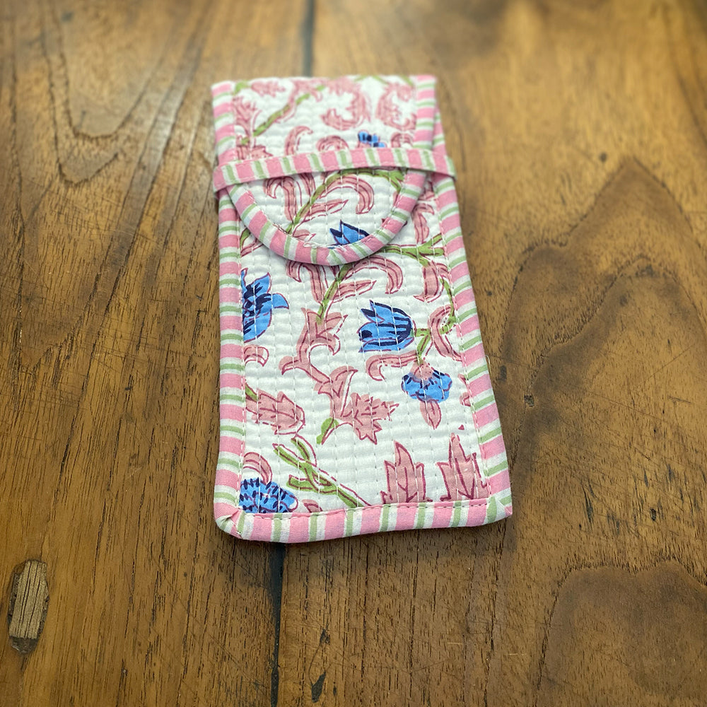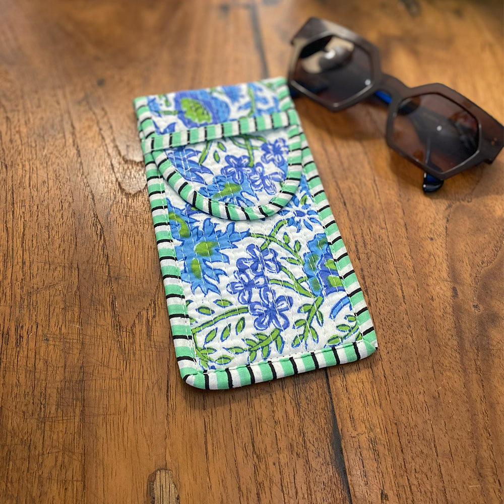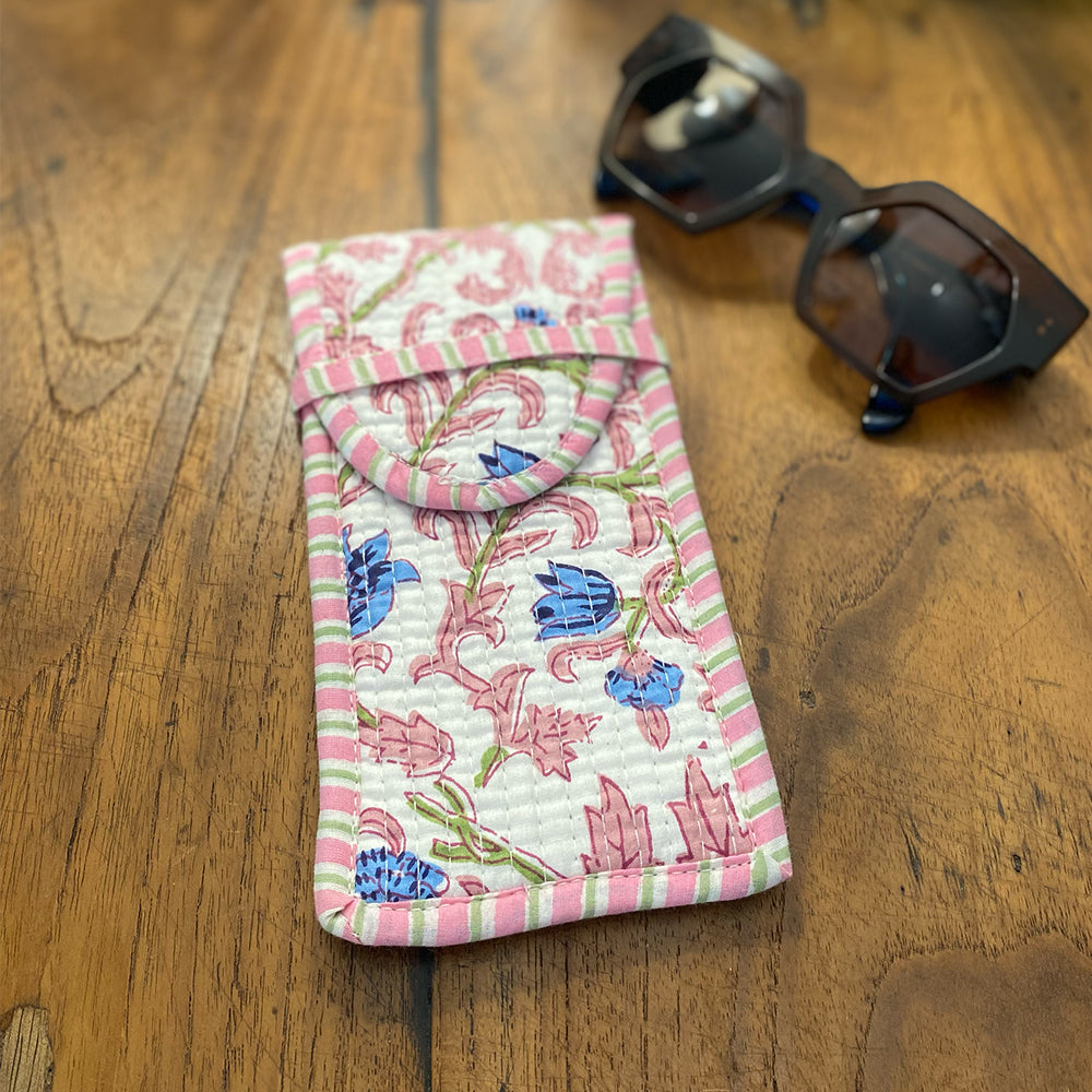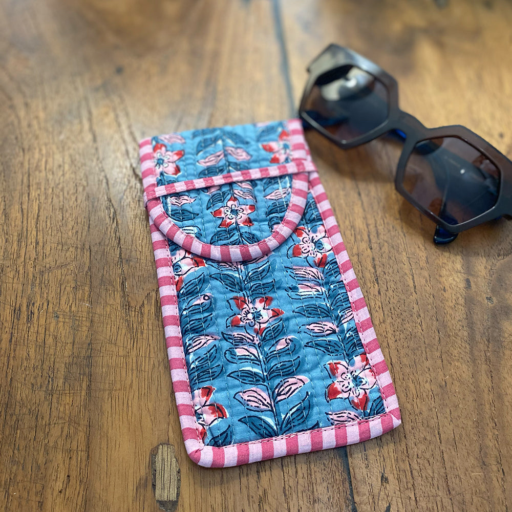 Block Printed Glasses Case – Quilted Cotton Eyewear Pouch - Georgia