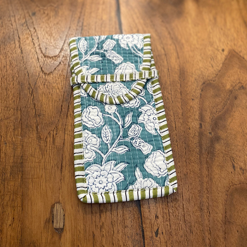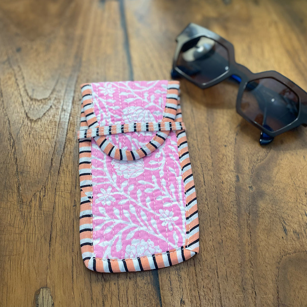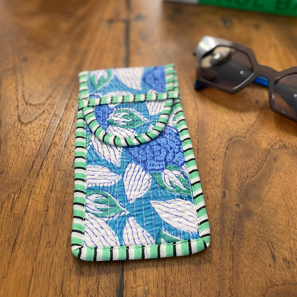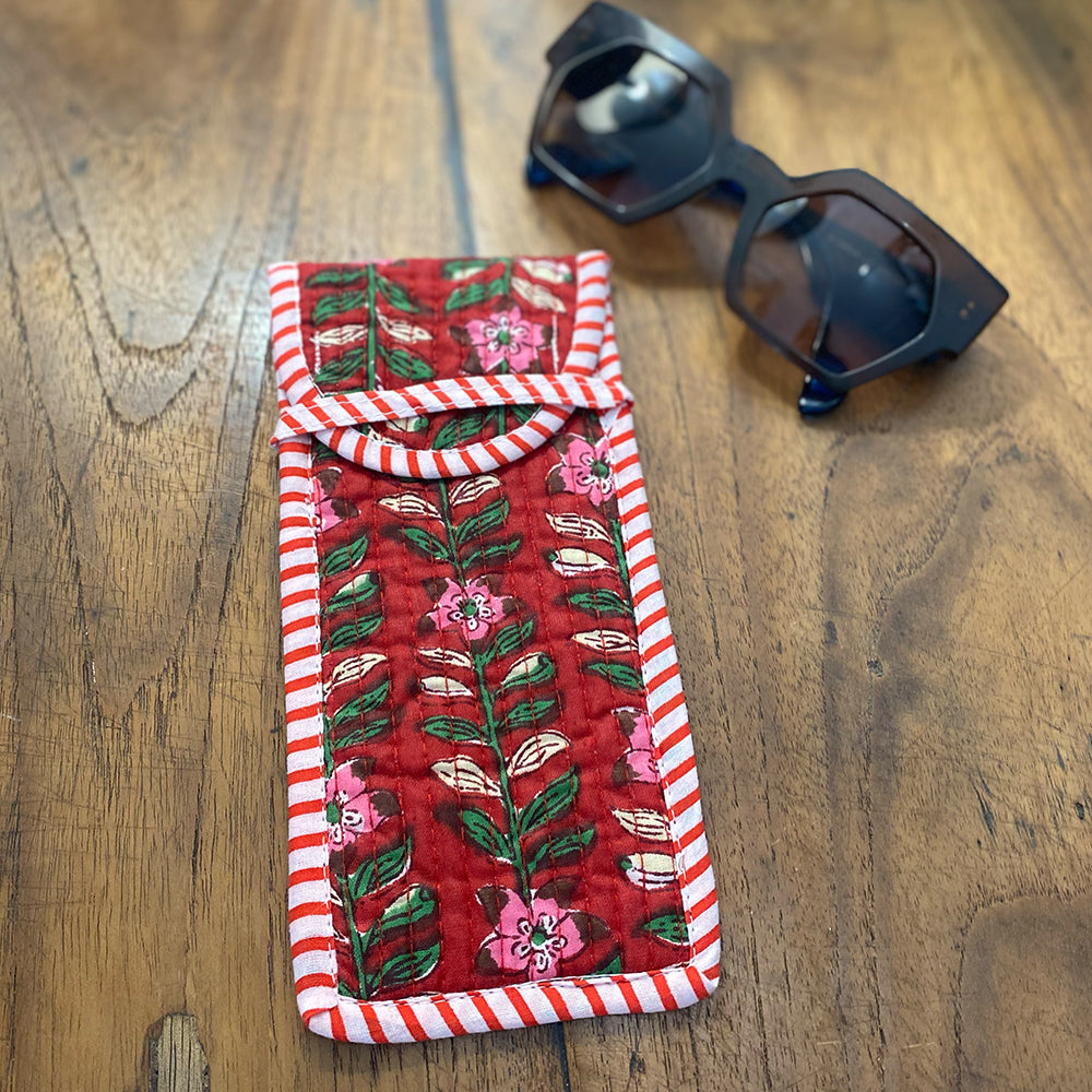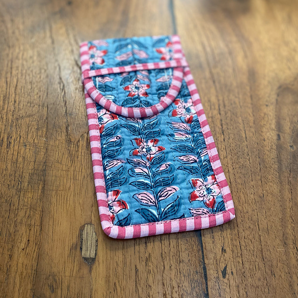Block Printed Glasses Case – Quilted Cotton Eyewear Pouch - Georgia