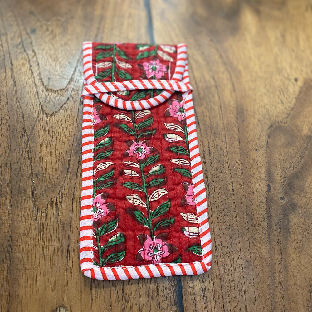 Block Printed Glasses Case – Quilted Cotton Eyewear Pouch - Millie