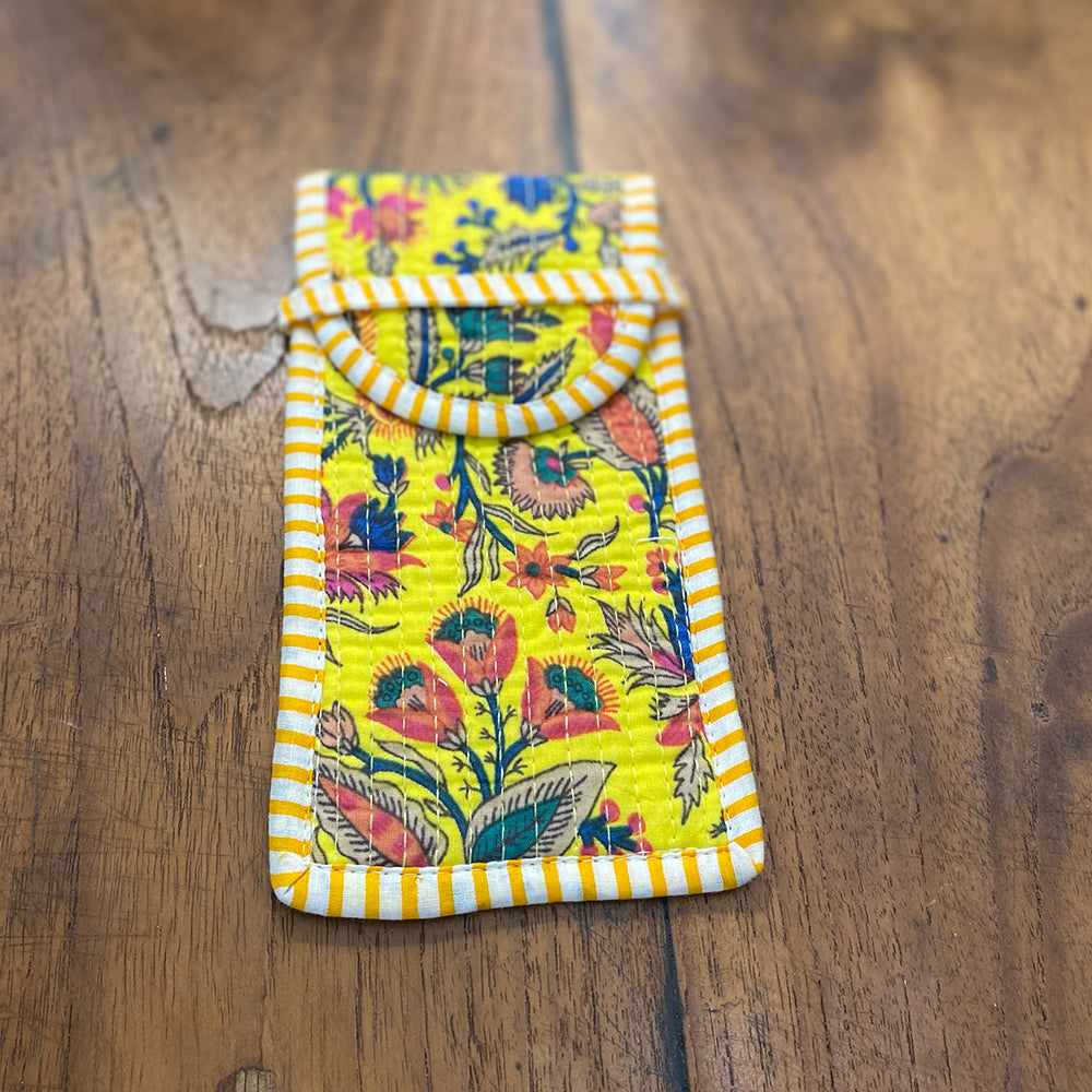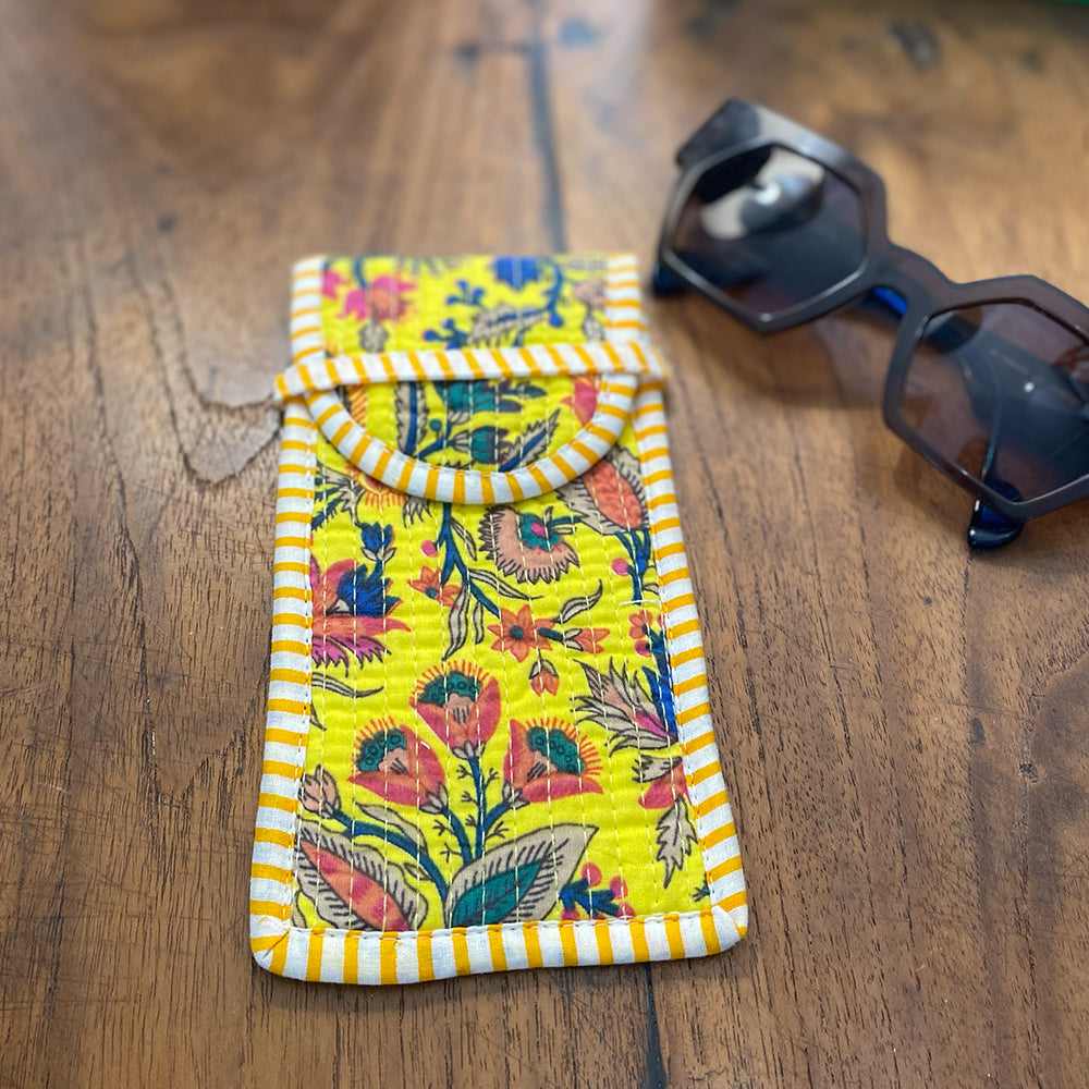 Block Printed Glasses Case – Quilted Cotton Eyewear Pouch - Nellie