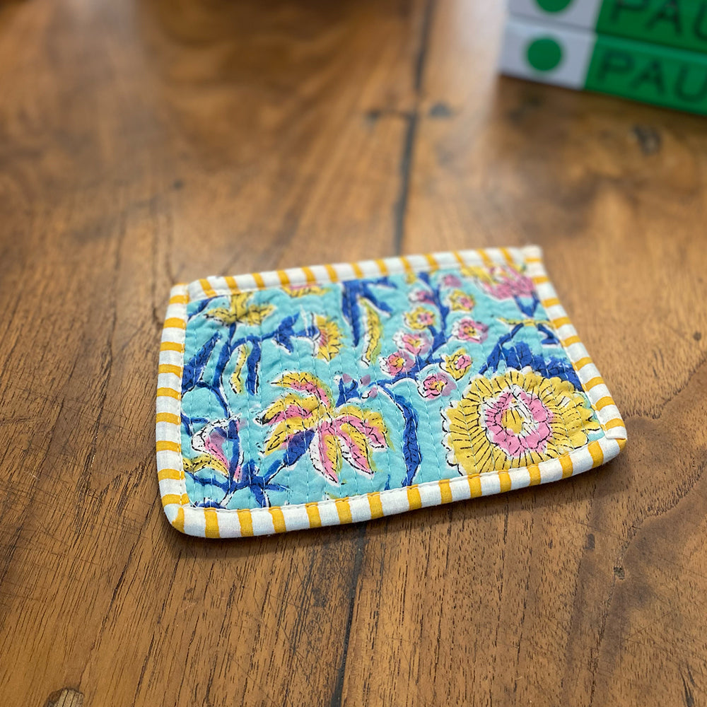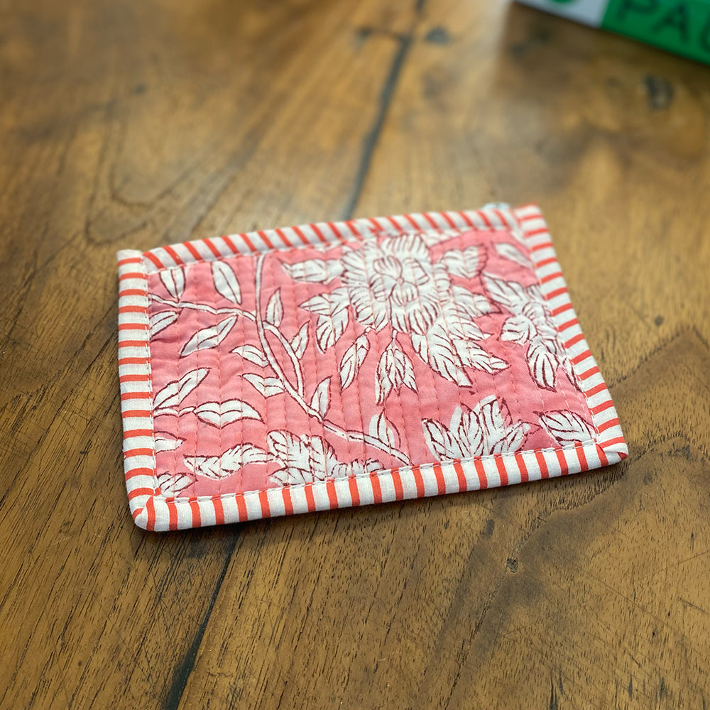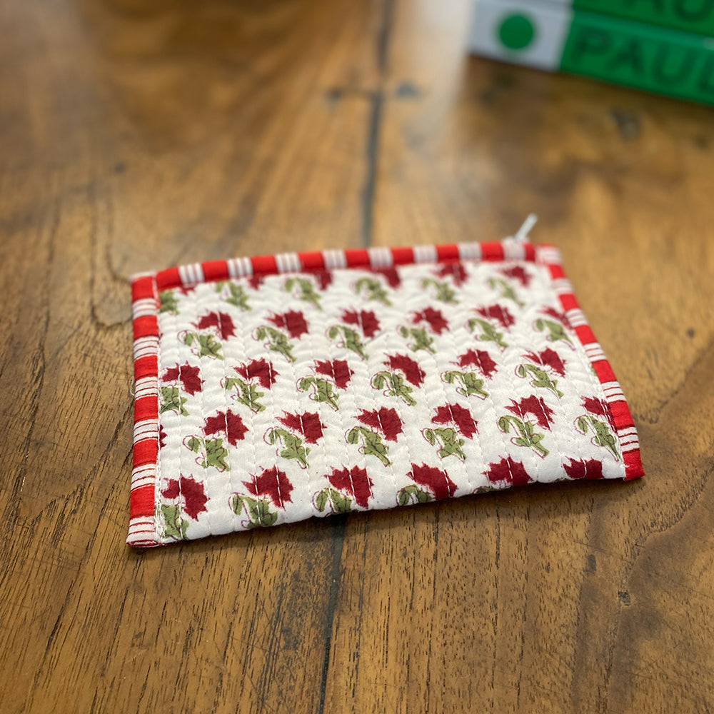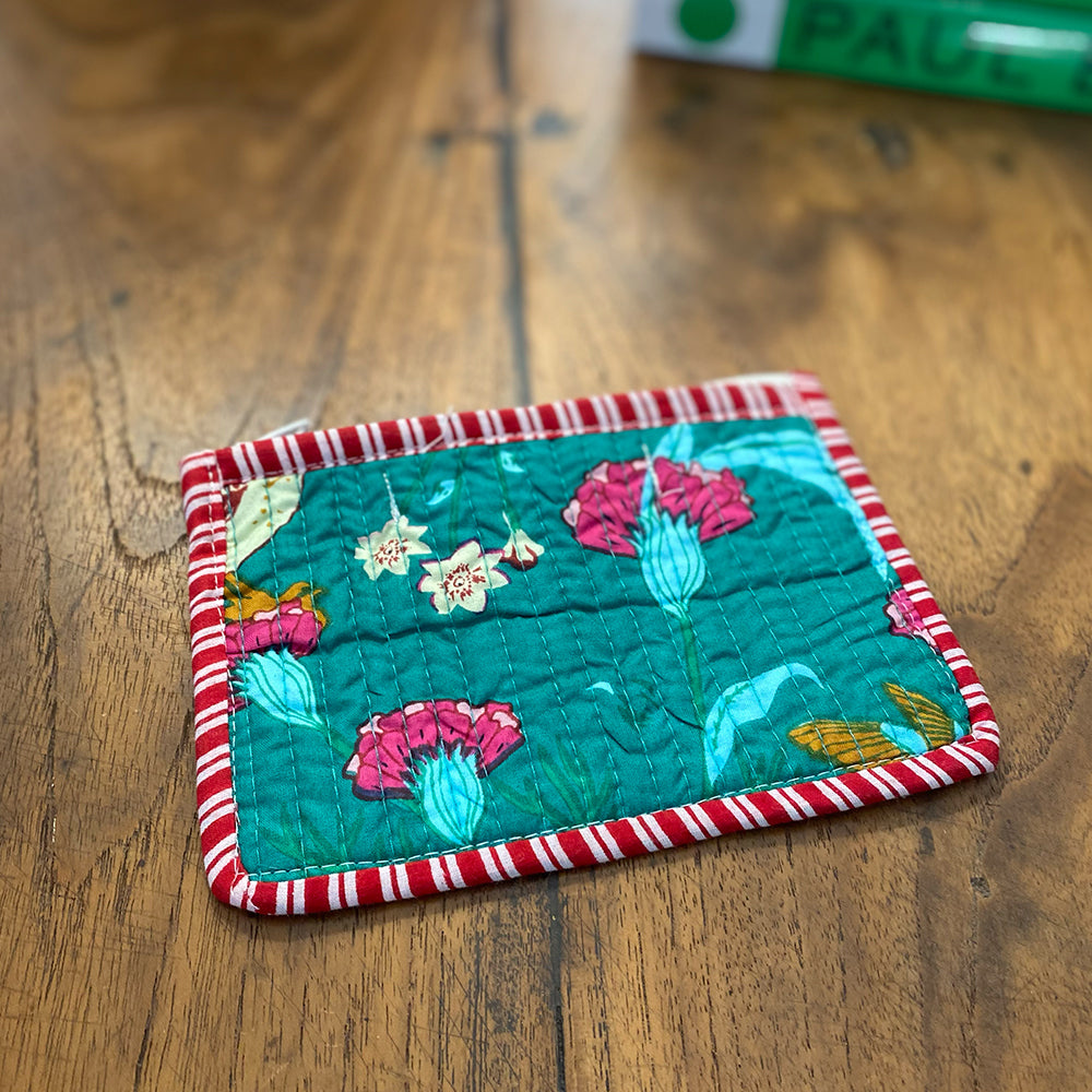 Quilted Cotton Purse – Block Printed Zipper Pouch - India