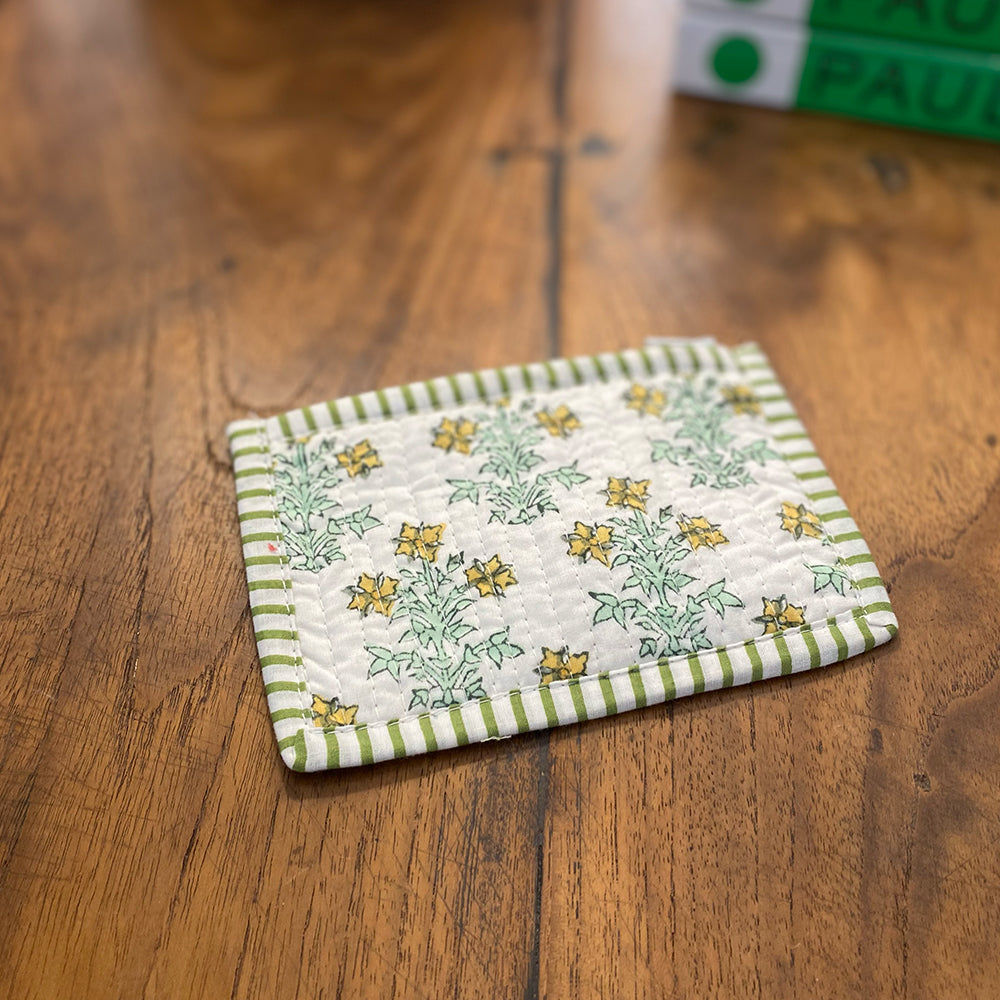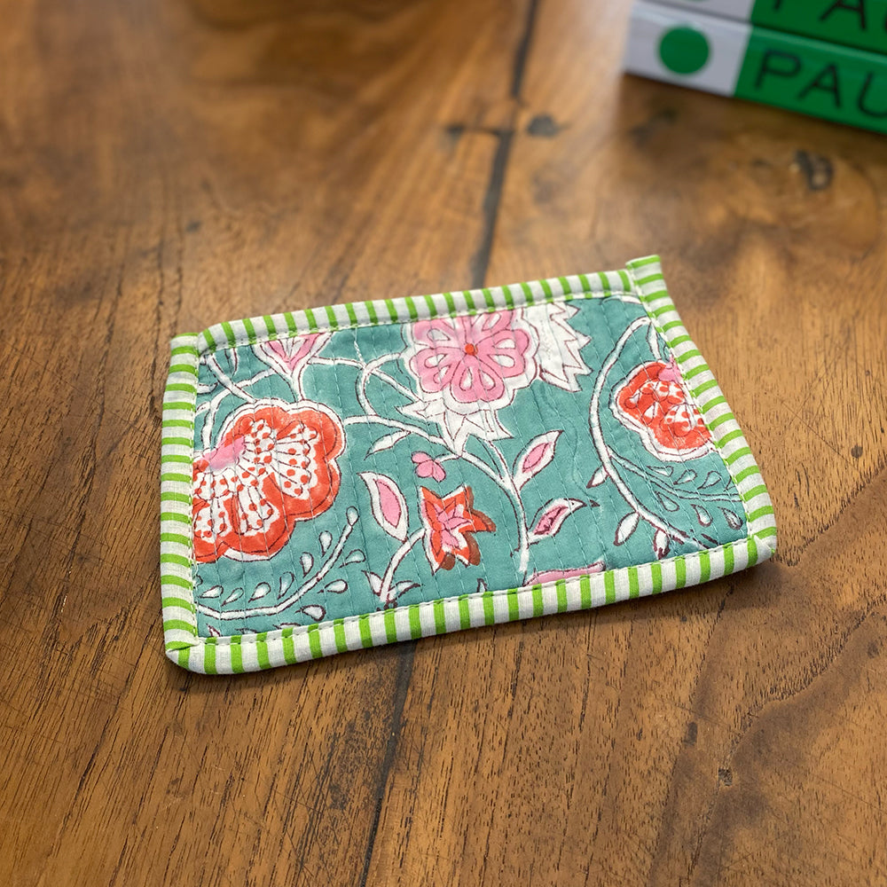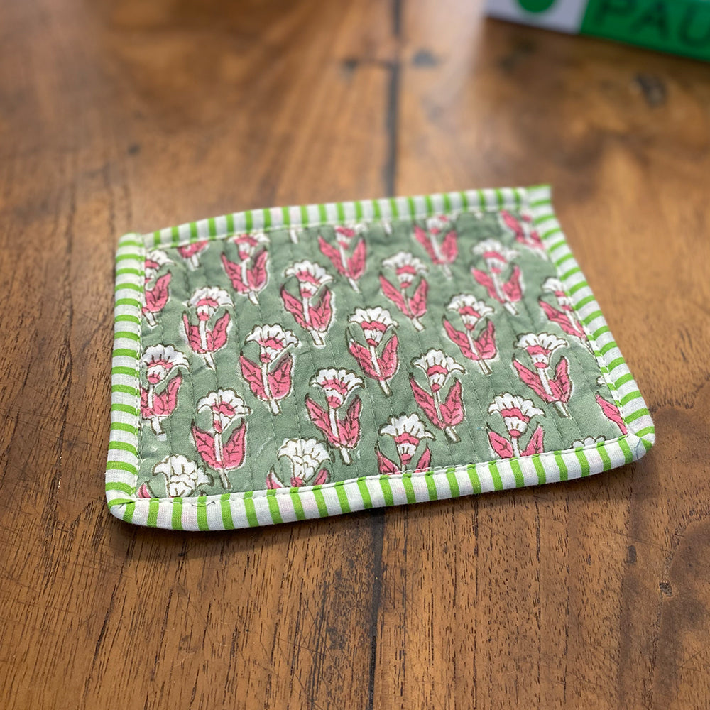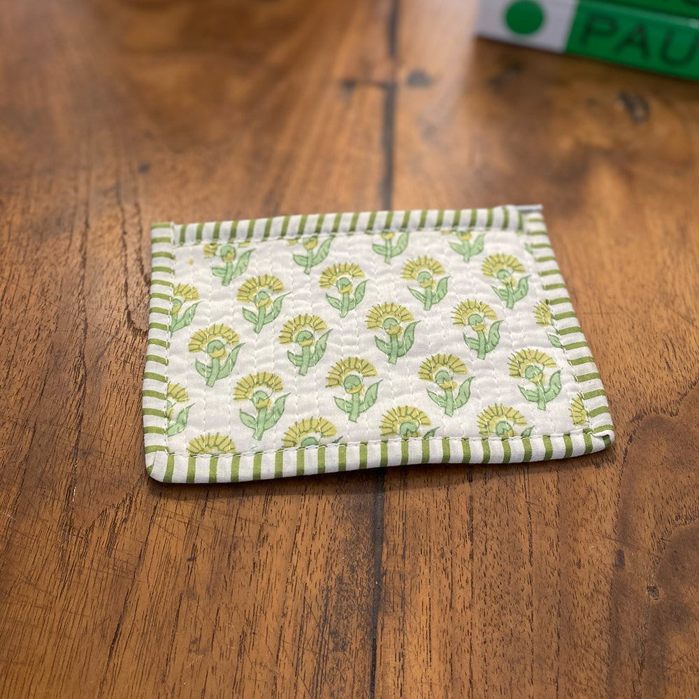 Quilted Cotton Purse – Block Printed Zipper Pouch - Clover