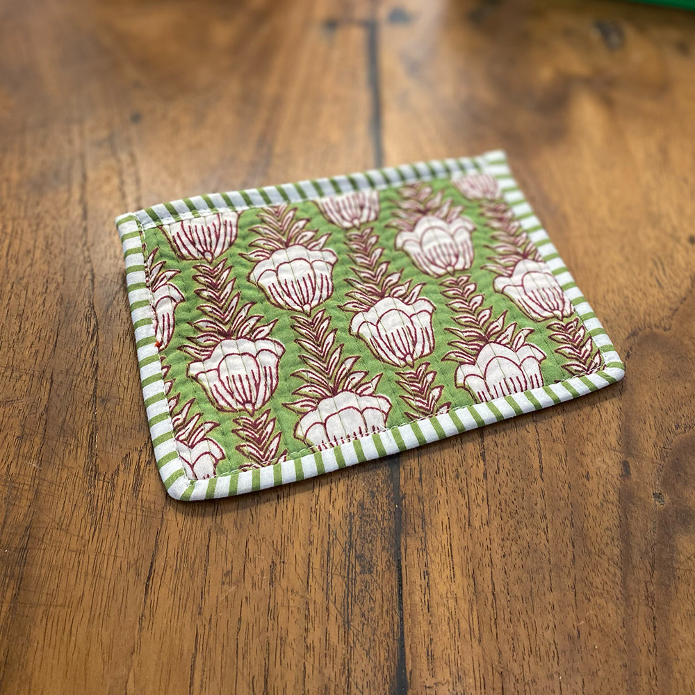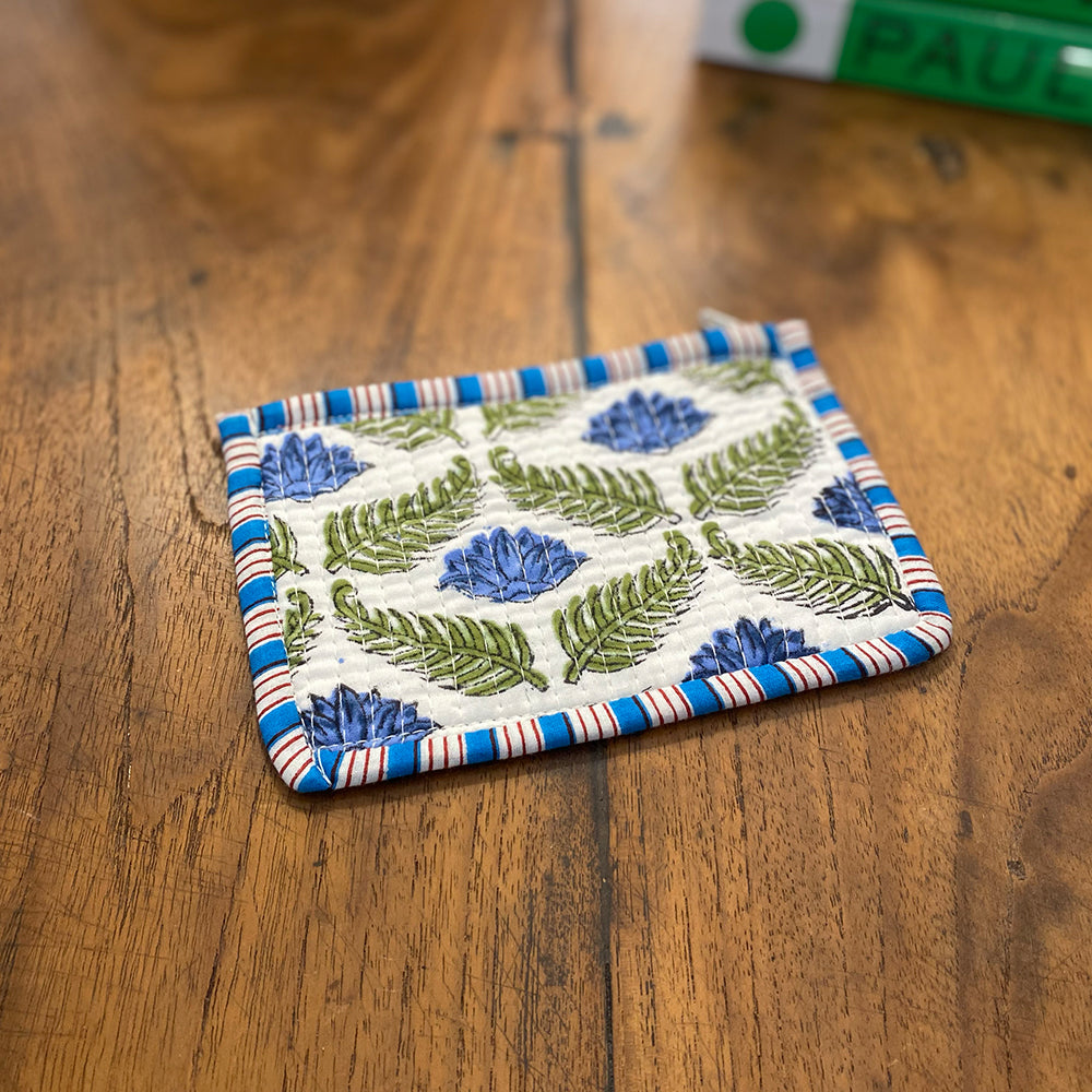 Quilted Cotton Purse – Block Printed Zipper Pouch - Fern