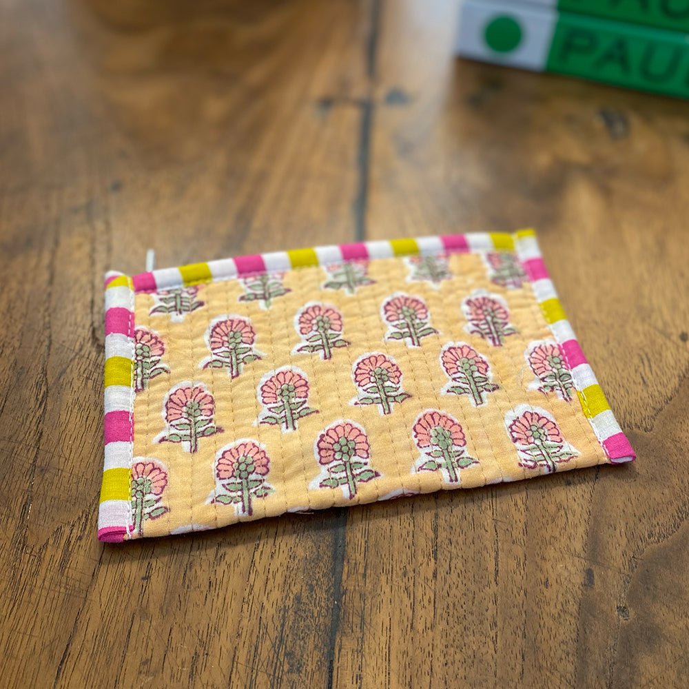 Quilted Cotton Purse – Block Printed Zipper Pouch - Tate
