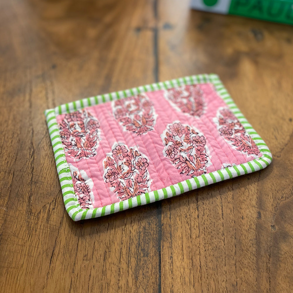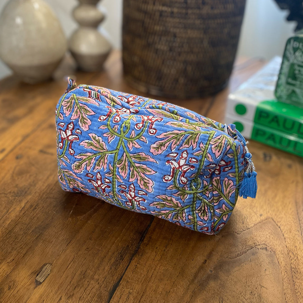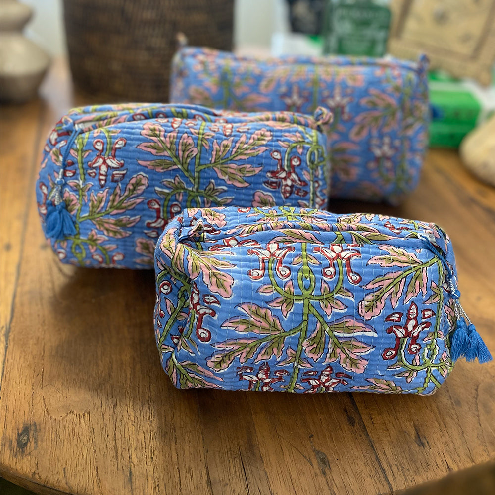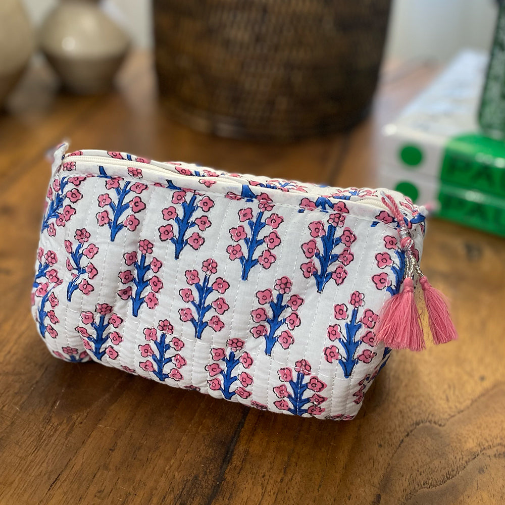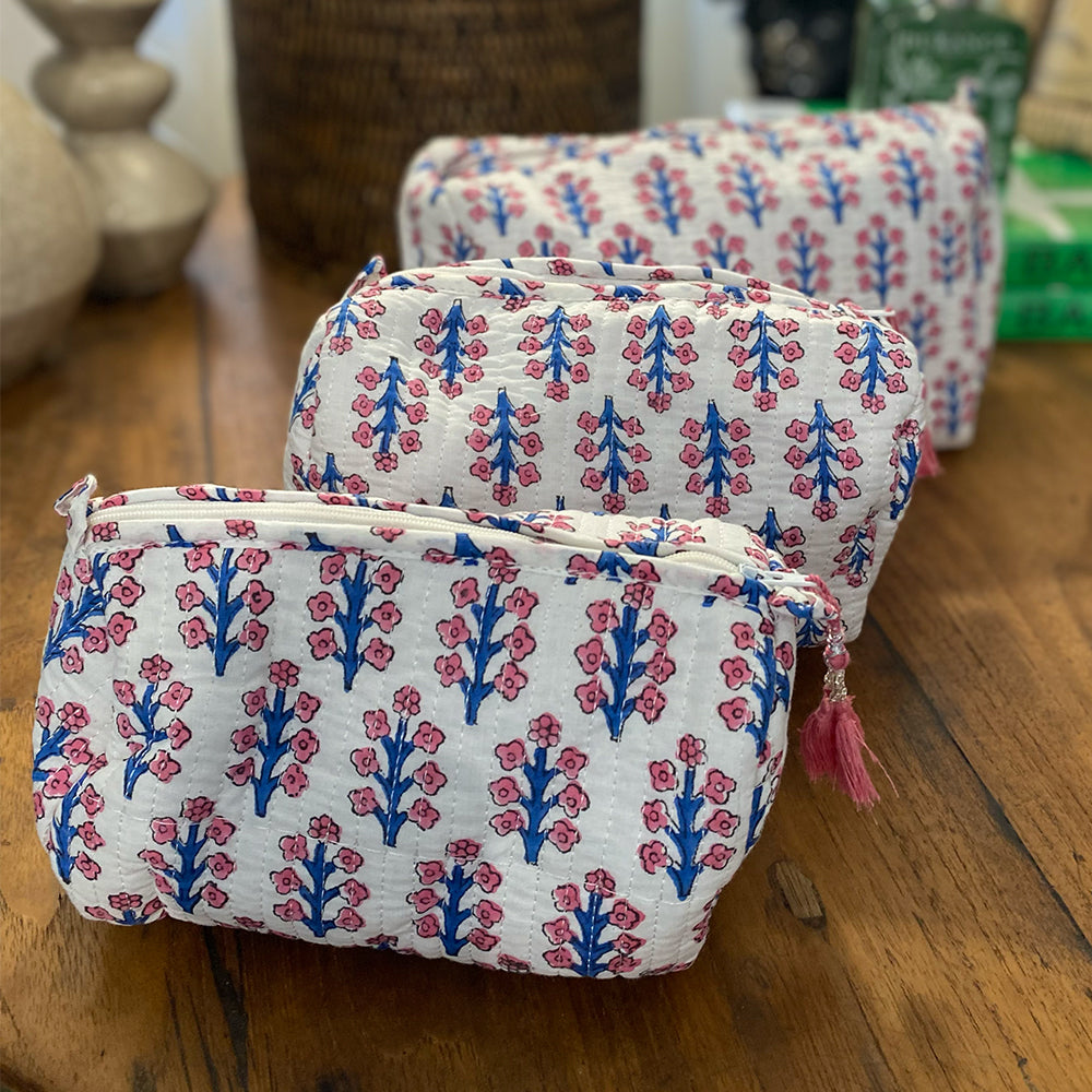 Quilted Cotton Cosmetic Pouch – Block Printed - Elsie