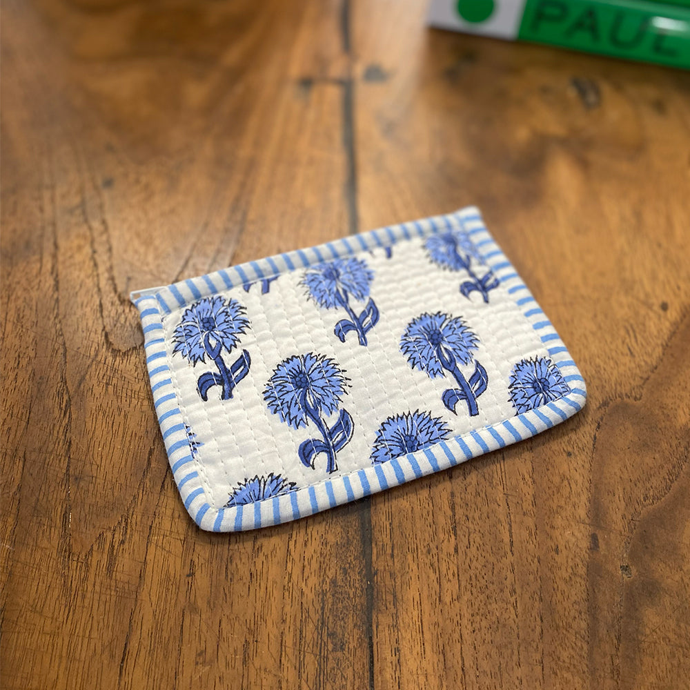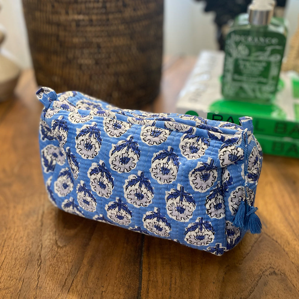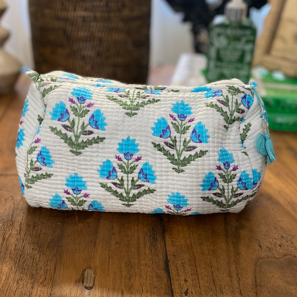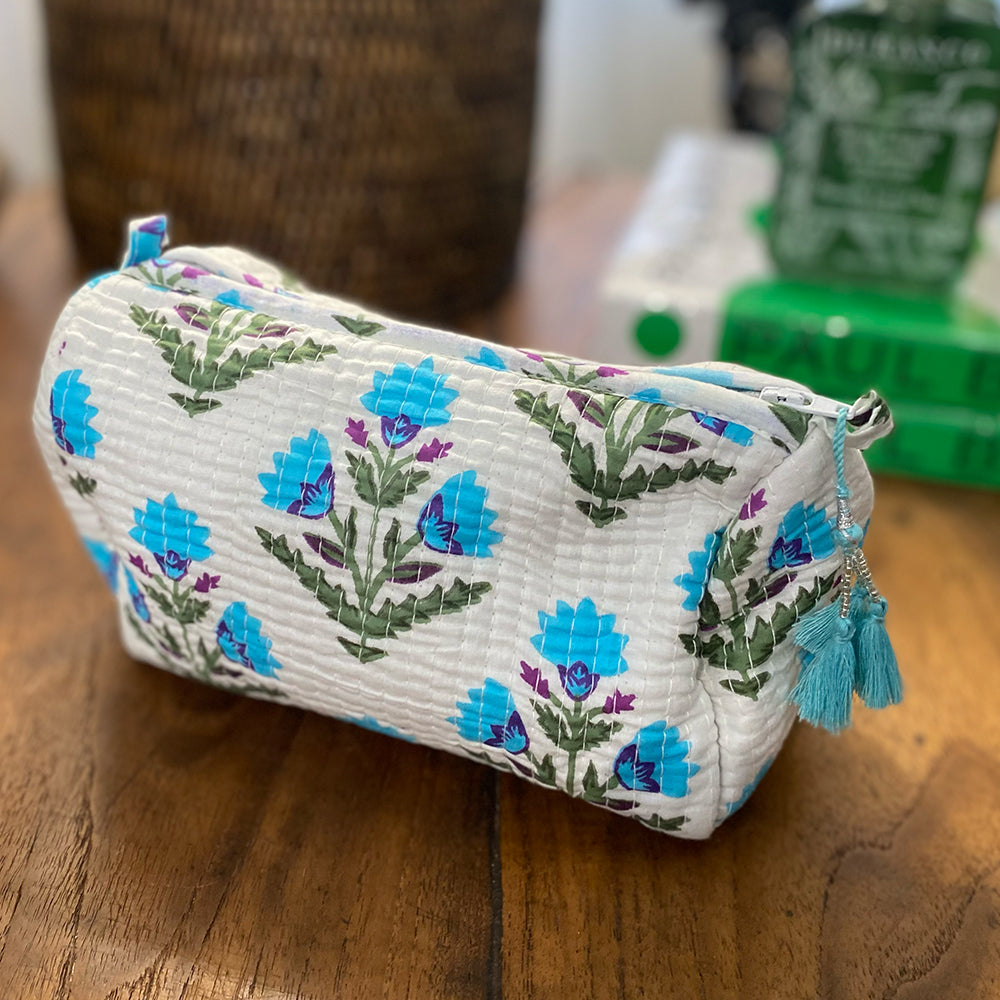 Quilted Cotton Cosmetic Pouch – Block Printed - Iris