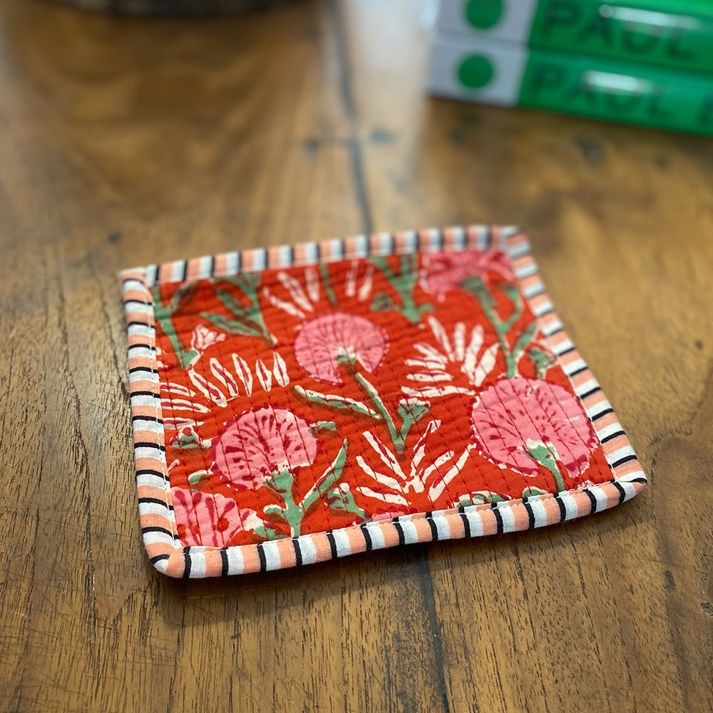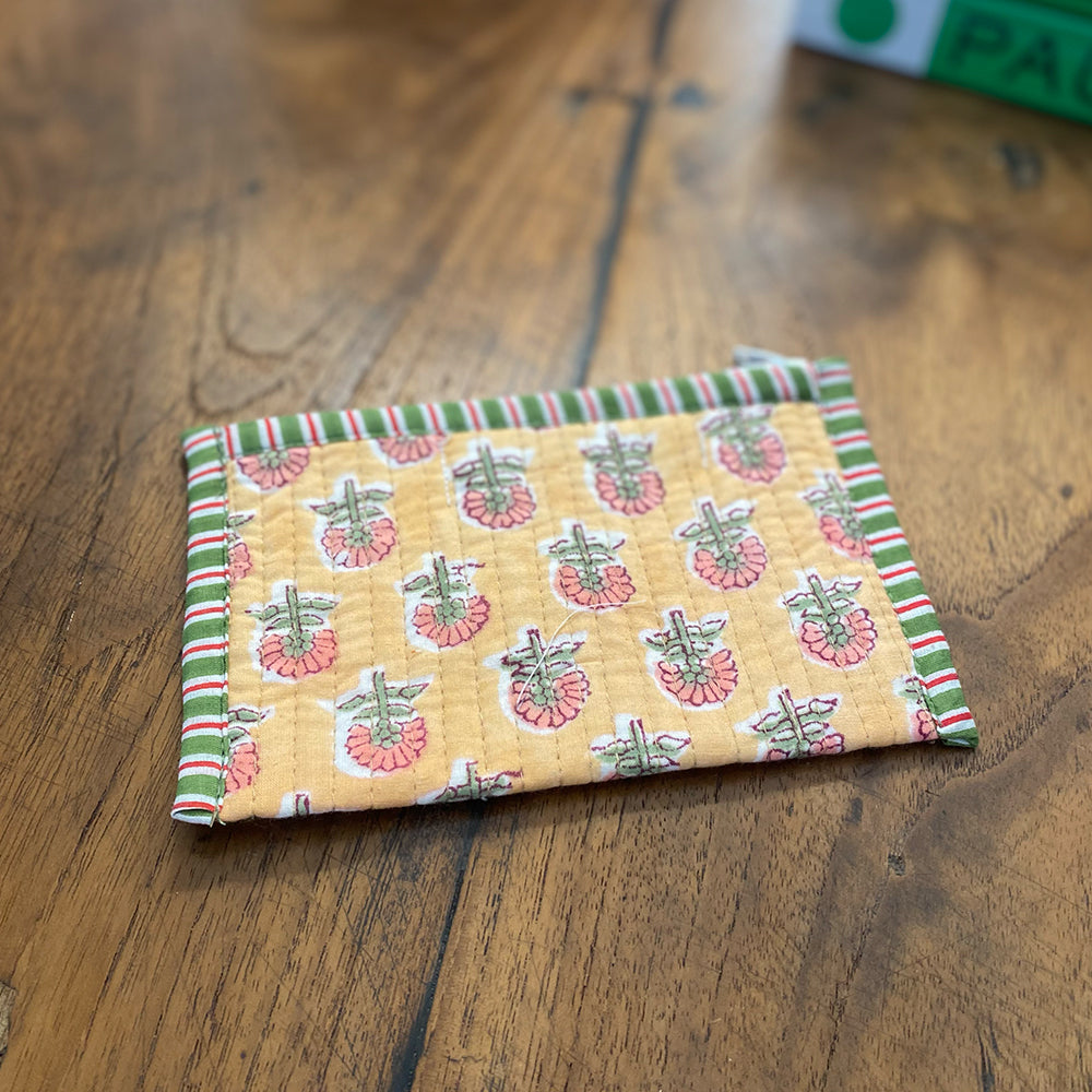 Quilted Cotton Cosmetic Pouch – Block Printed - Siena