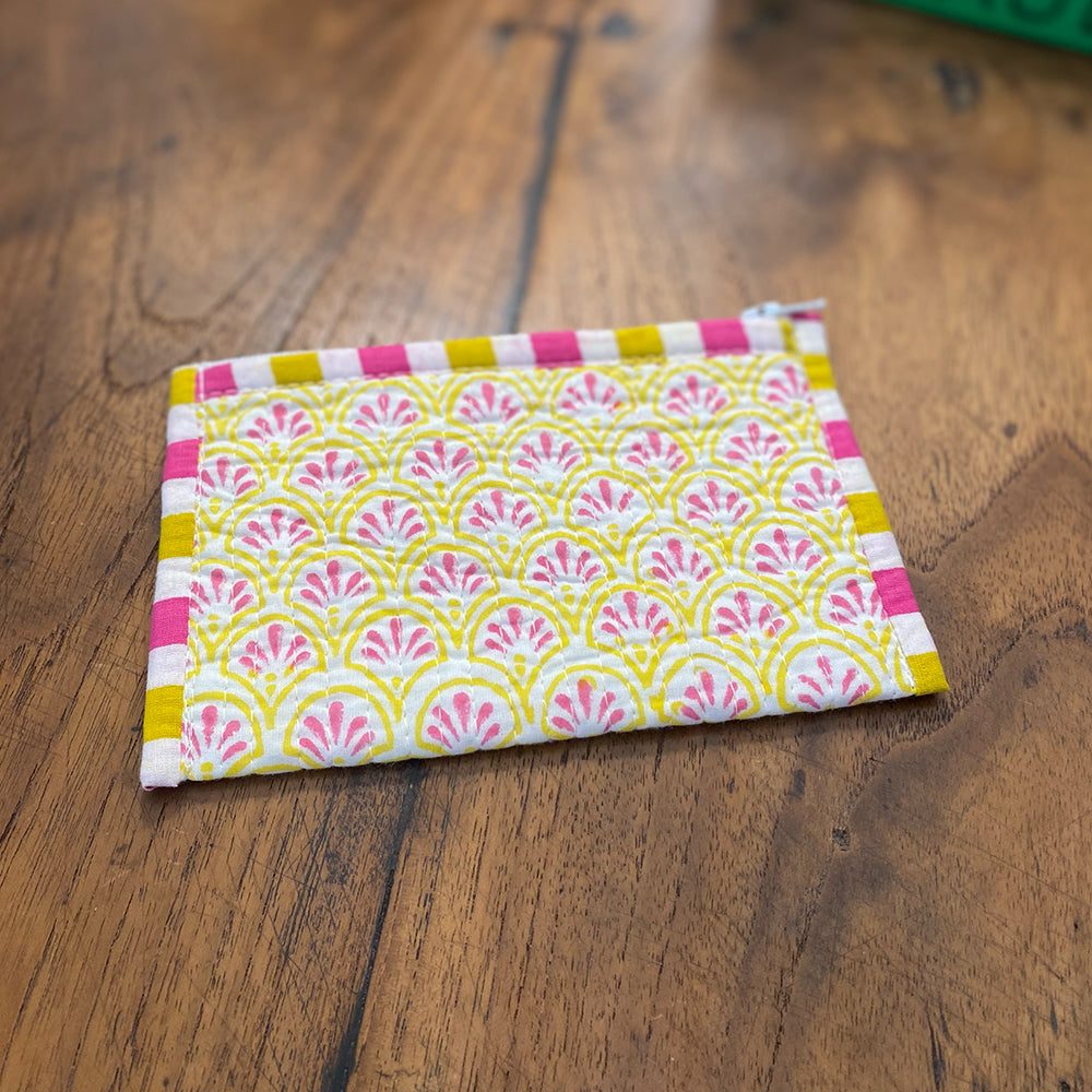 Quilted Cotton Purse – Block Printed Zipper Pouch - Ida