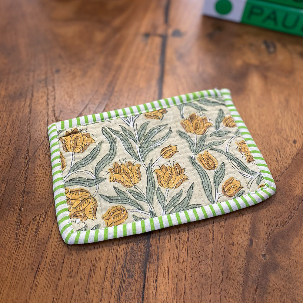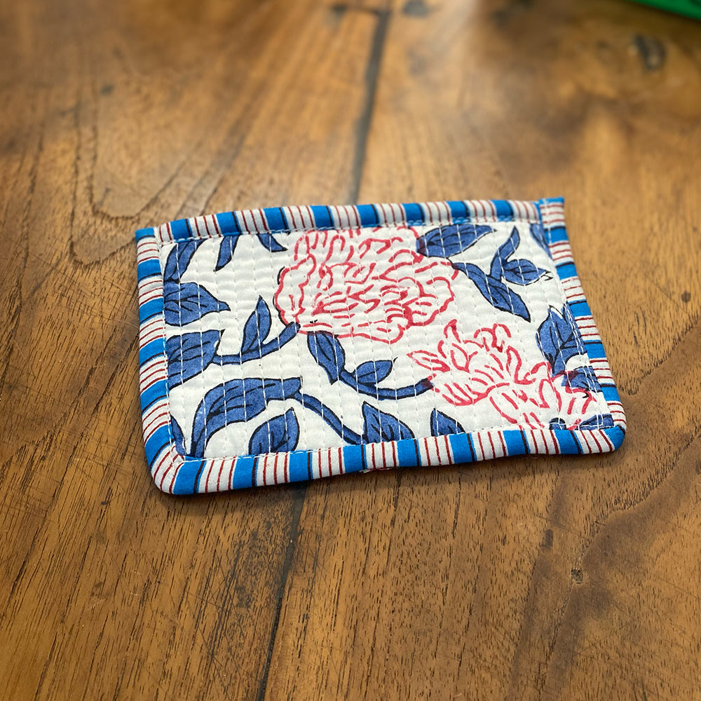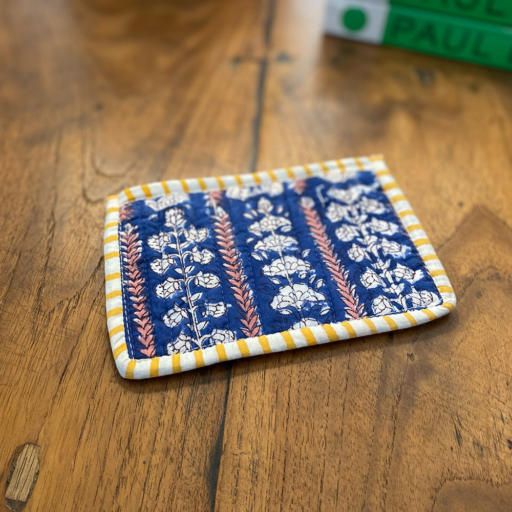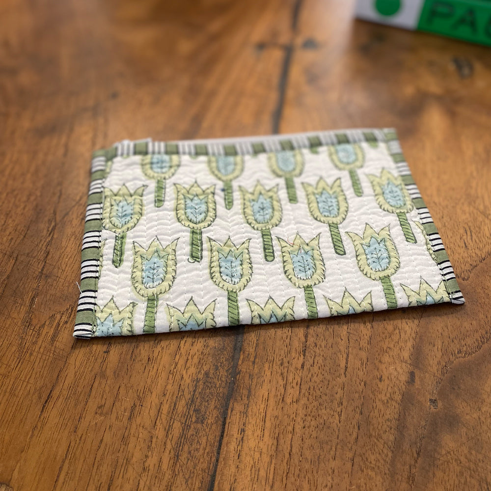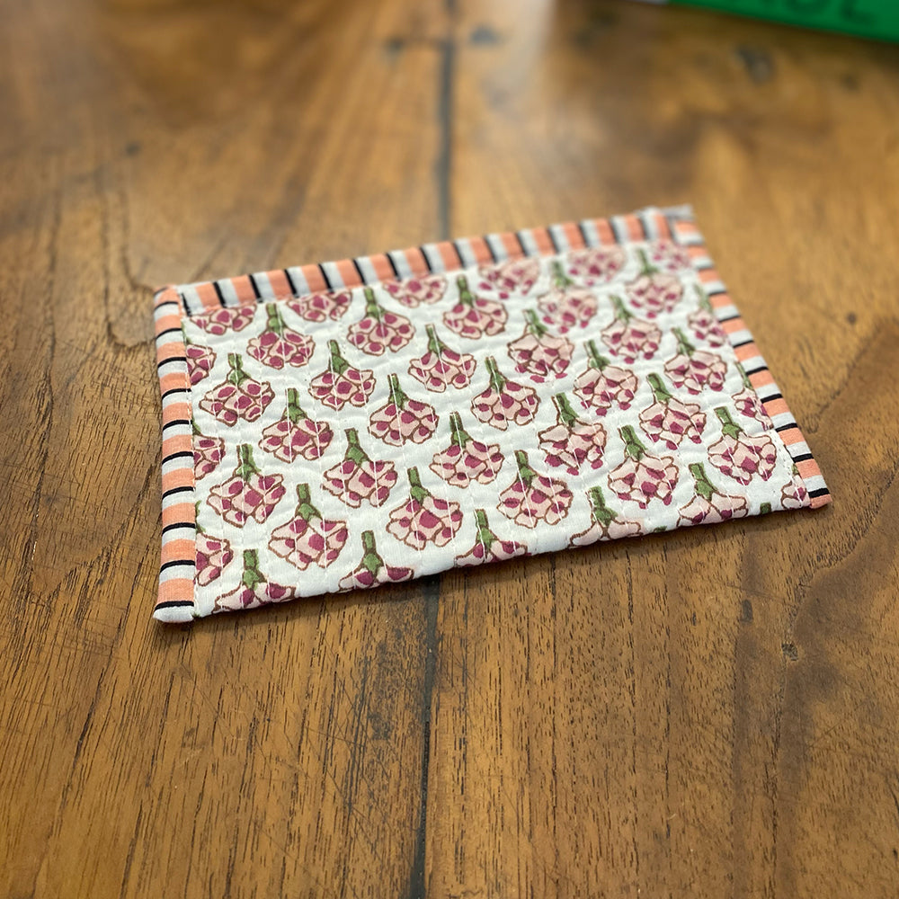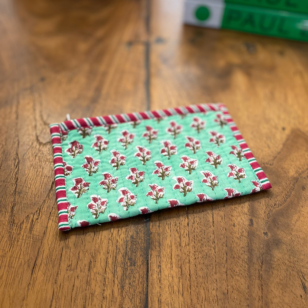 Quilted Cotton Cosmetic Pouch – Block Printed - Edith