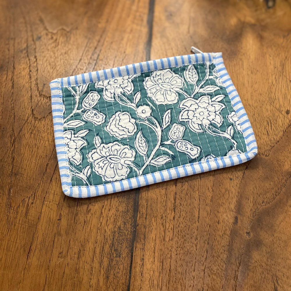 Quilted Cotton Purse – Block Printed Zipper Pouch - Gaia
