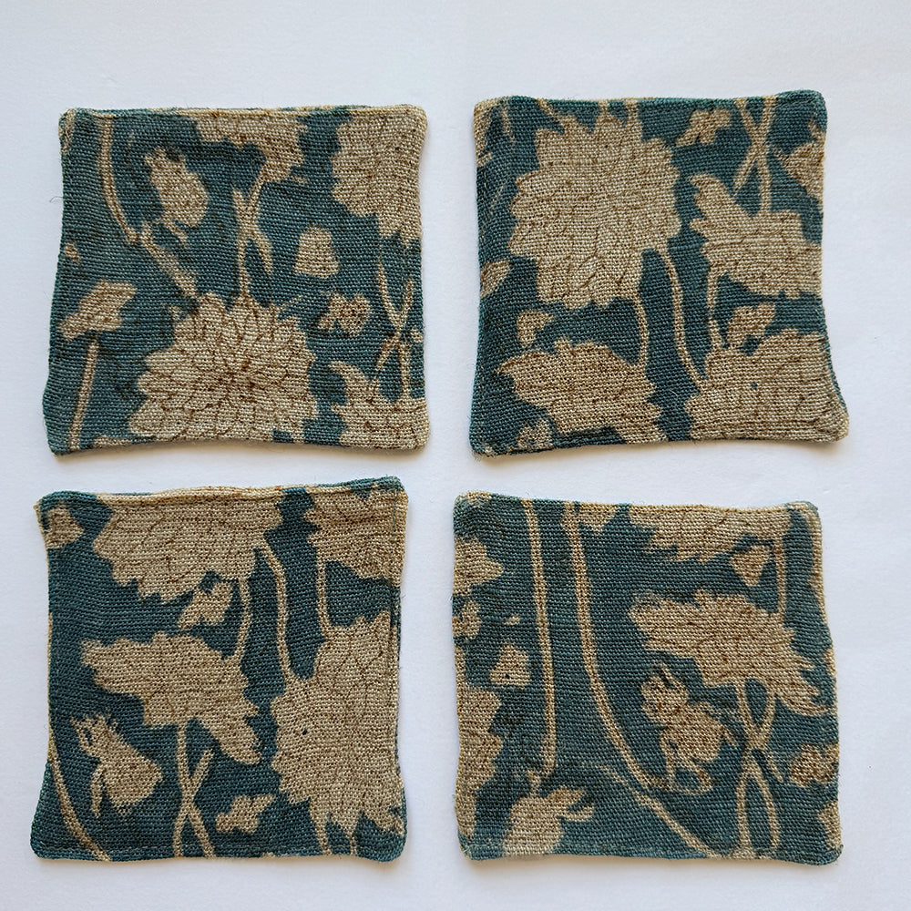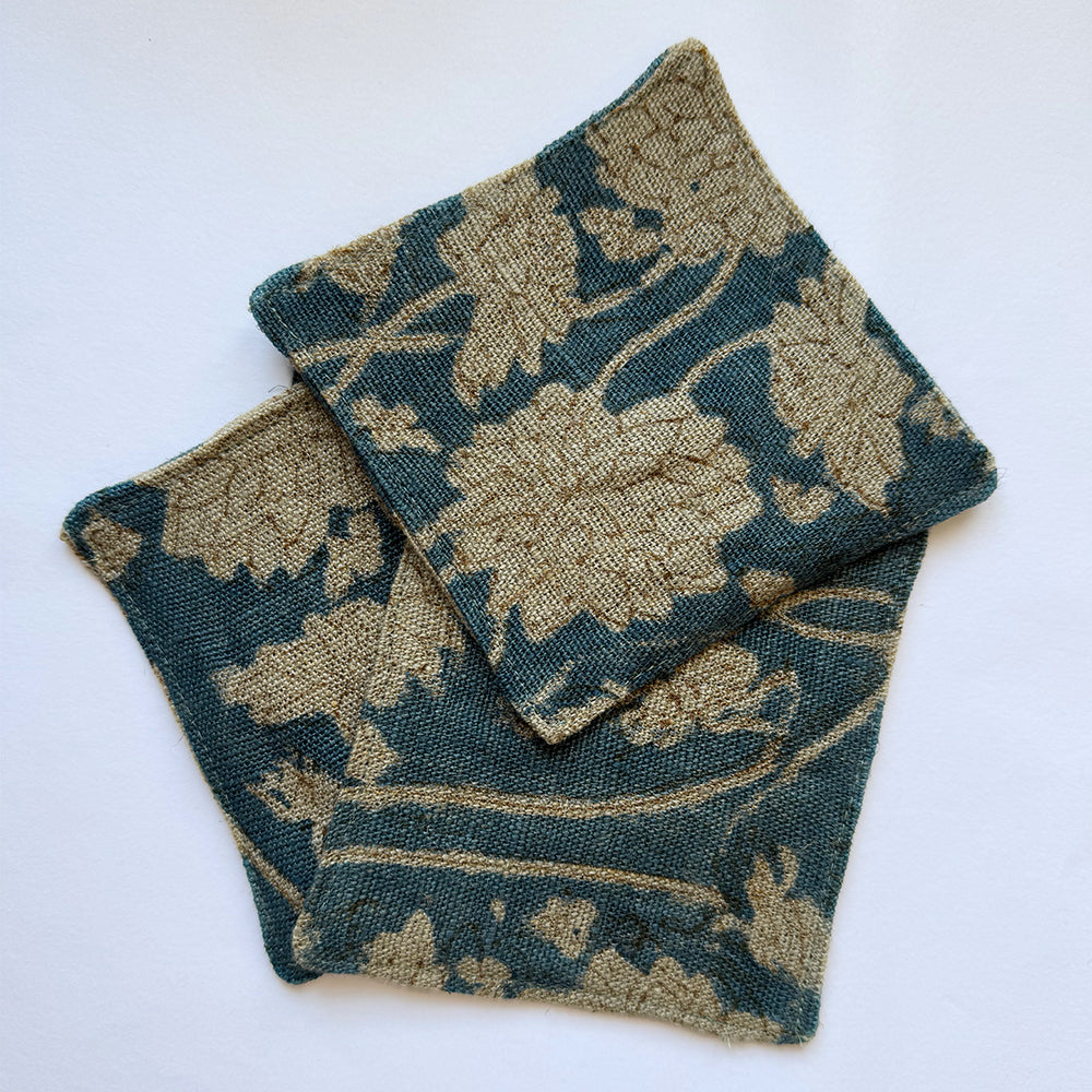 Newport Blue Floral Linen Coaster Set – Set of 6