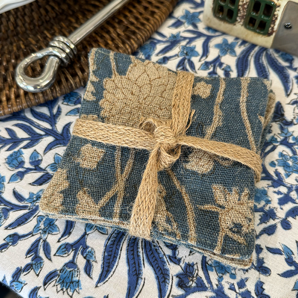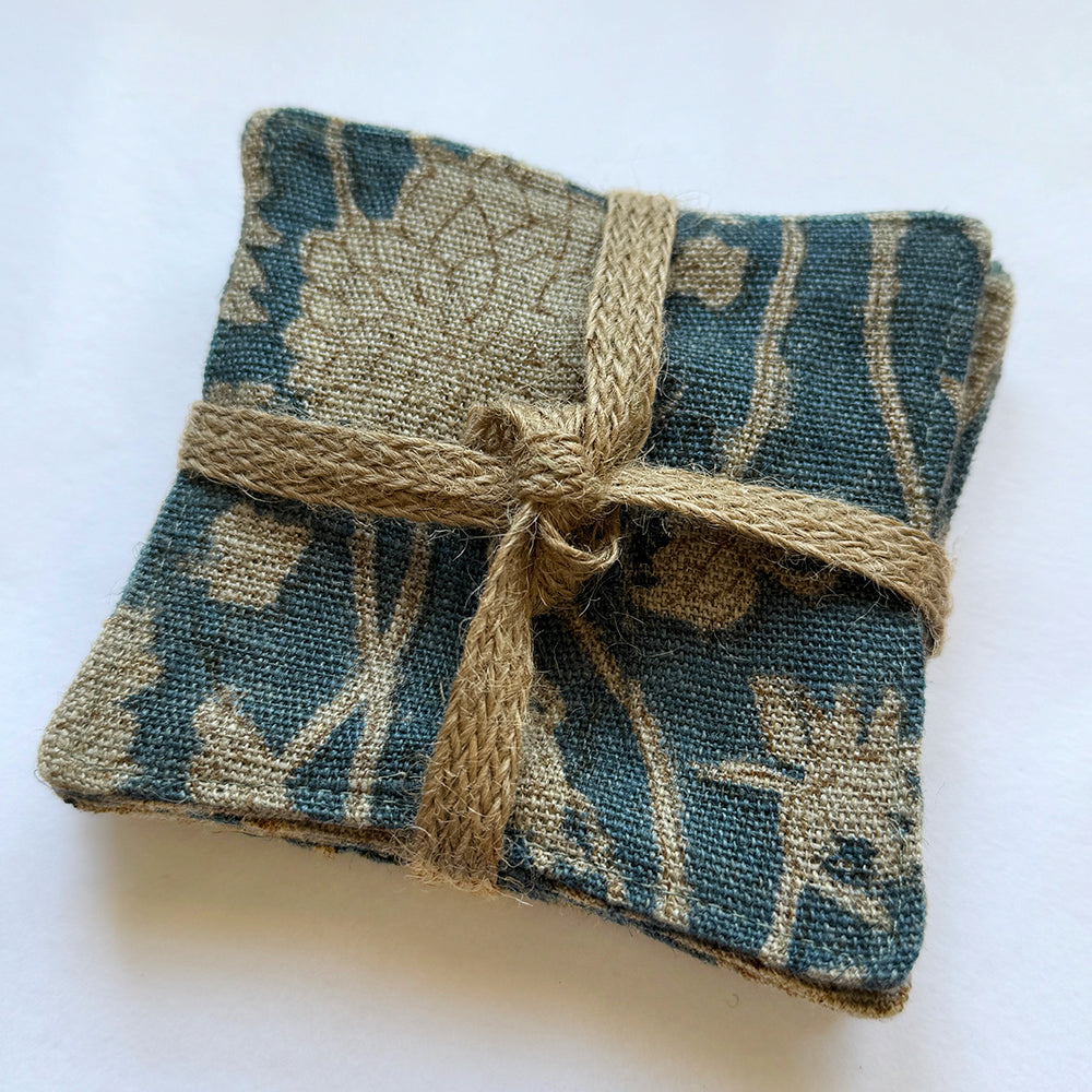 Newport Blue Floral Linen Coaster Set – Set of 6