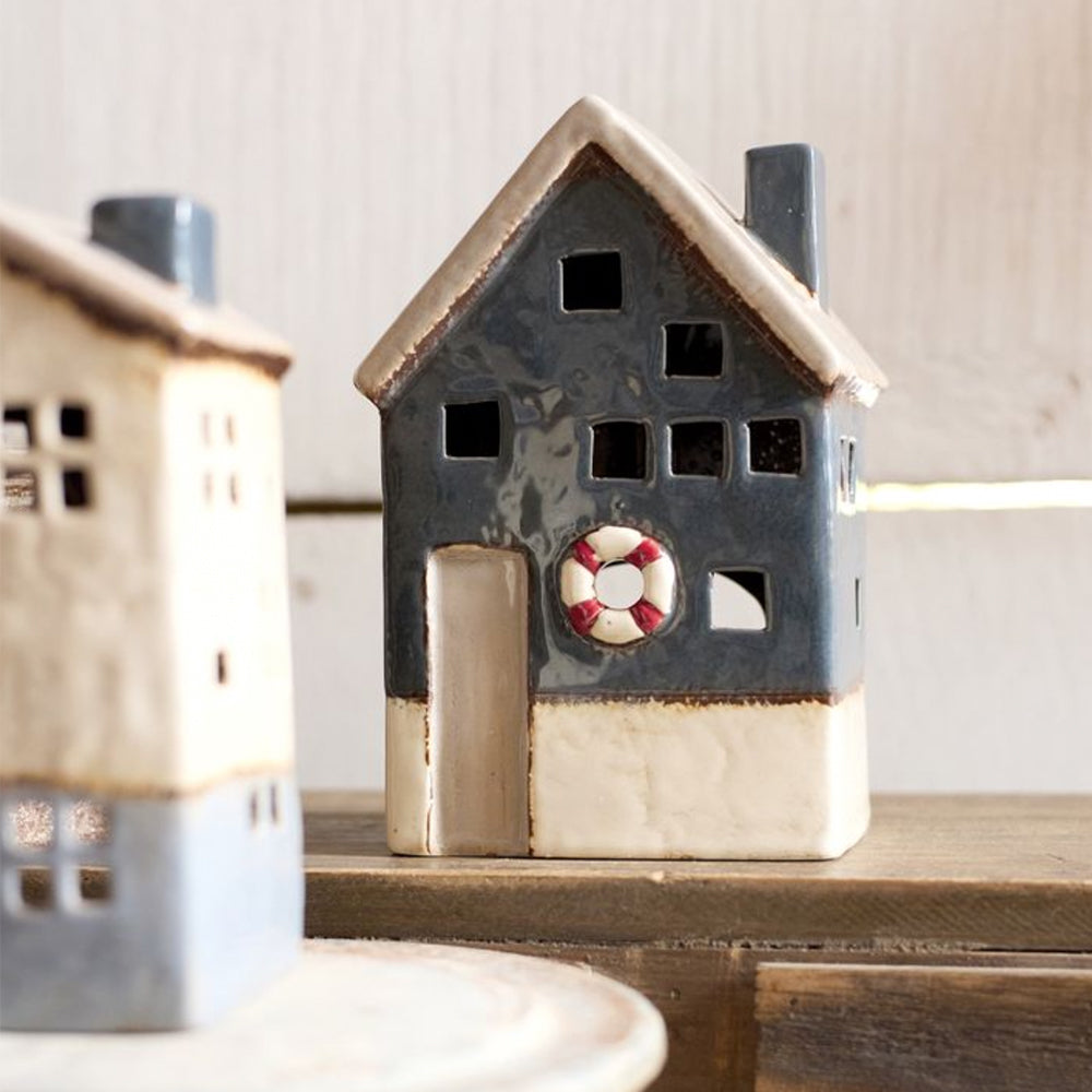Capture the charm of coastal living with the Nantucket Seaside Tea Light House. These hand-painted ceramic pieces, inspired by the charming Nantucket seaside, feature delicate nautical details; collect them all to create a perfect coastal tealight house display.